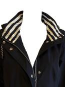 Windfield Bati vindjakke i flot marine blå. Jakken har aftagelig hætte, lynlås og trykknap lukning. Lynlås skrålomme foran og god længde ned over hoften. Jakken er let facon fittet og har en lille slids bagpå. Nederdste kant i ærmerne kan bukkes op og foret er marine blå og hvid stibet. Samme strib er i kraven indvendig. Snor i hætten er også marine og hvid stribet. Jakken er vindtæt, vandafvisende og åndbar. UV modstandsdygtig. 100 % polyester. Vask ved 30 grader.