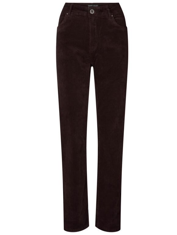 Marc Lauge Luna fløjls buks i flot mørk chokolade brun farve. Buksen er i klassisk facon med 5 lommer, høj talje og regulær facon med moderat smalle ben. 80 % bomuld, 17 % viscose og 3 % elastan. Vask ved 30 grader. Max krymp 5 %.