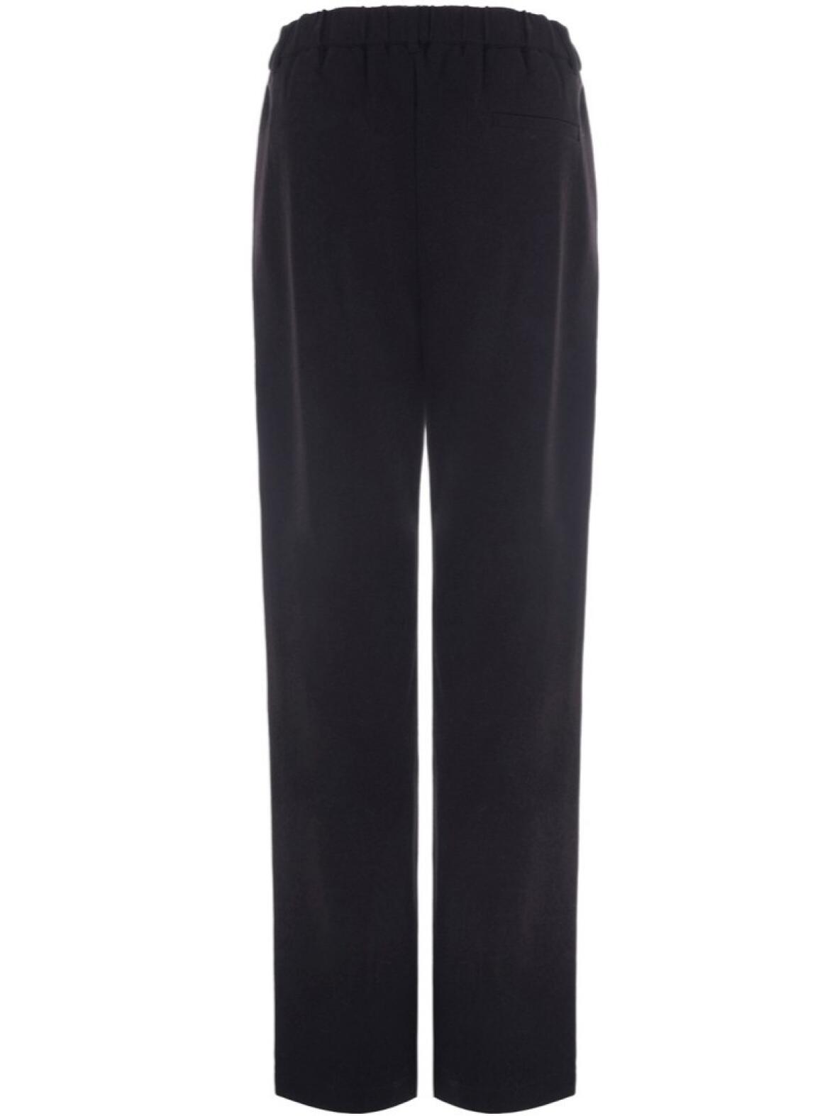 Designet har en bred elastik i taljen og bæltestropper for ekstra form, skrålommer foran med grov lynlås og en enkelt paspoleret baglomme. De moderat smalle ben giver et elegant, men afslappet udtryk, og stoffets bløde fald skaber en behagelig og sofistikeret stemning.