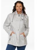 Windfield Dorit let vindjakke med aftagelig hætte og længde lige ned over hoften. Jakken er let facon markeret, lukkes med lynlås og overslag med trykknapper. Lange ærmer med mulighed for ombuk med kant i kontrastfarve. Lynlås lommer og indvendig brystlomme. Jakken er i halv blank polyester kvalitet i lys grå/beige nuance med kontrast stikninger i sart rosa. Jakken er vandafvisende. 90 % polyester og 10 % polyamid. Vask ved 30 grader.