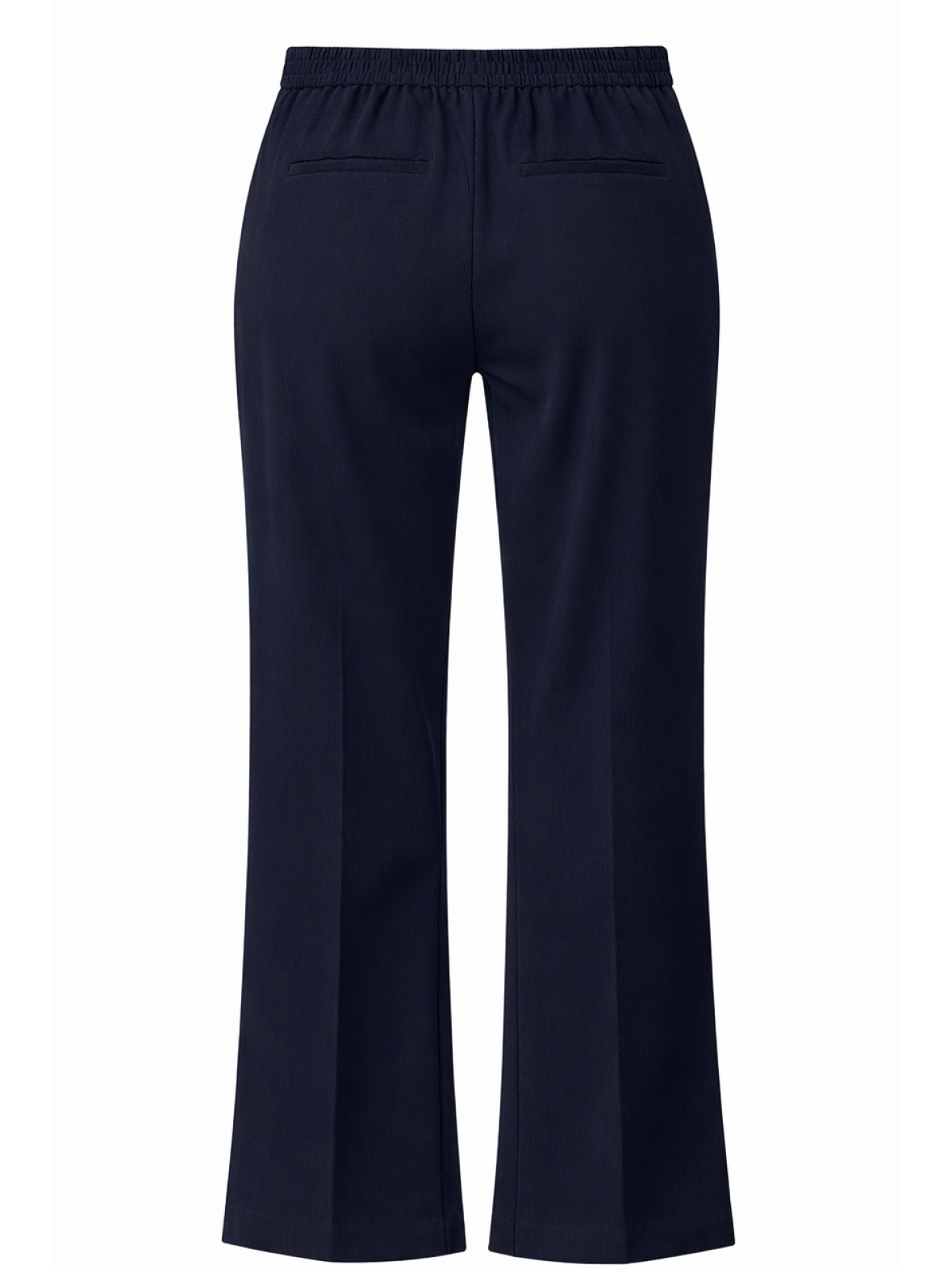 Designet har en fast linning foran og elastik i lænden for ekstra komfort. Bukserne har skrålommer, snyde paspolerede baglommer og god vidde i benene, som giver en let og flydende bevægelse. Materialet på 98 % polyester og 2 % spandex sørger for en blød følelse og let stretch, så pasformen føles både afslappet og elegant.