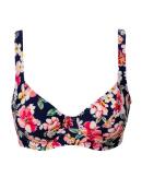 Trofè bikini overdel med bøjle og regulerbare stropper. Marine blå med multifarvet blomster print. 82 % polyamid og 18 % elastan. Håndvaskes.
