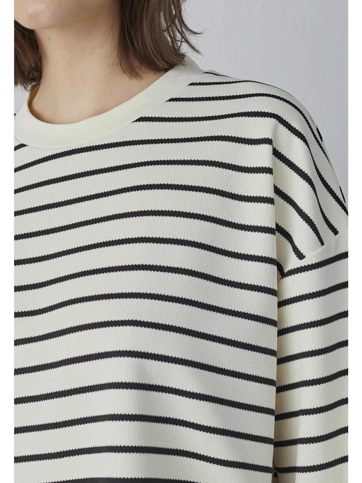 Sisters Point Eliso oversize sweat bluse med rund hals med ribkant, og lange ærmer med ribmanchet. Blusen har lavt påsat ærme og er ret rummelig og løs. Offwhite med smalle vandrette sorte striber 100 % polyester. Vask ved 30 grader.