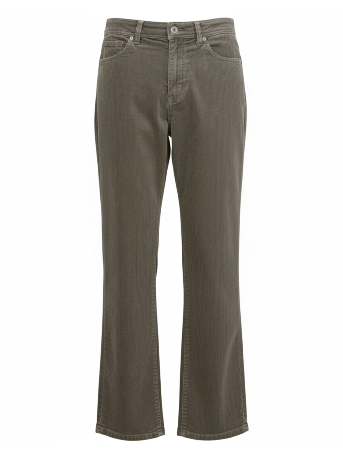 Marc Lauge Lena Vega fløjlsbuks i bred riftlet fløjl i flot mørk sand farve. Går godt sammen med farverige bluser og skjorter, for et balanceret look.