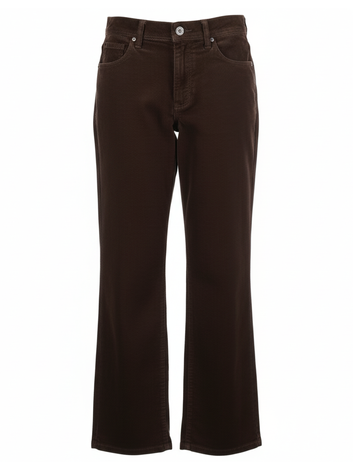 Marc Lauge Lena Vega fløjlsbuks i bred riftlet fløjl i flot mørk chokolade farve. Farven passer godt til det meste, for eksempel sort eller andre jordfarver.