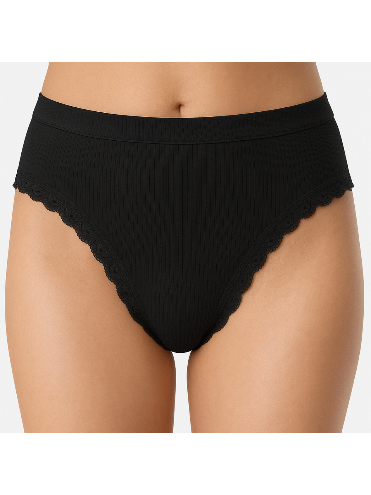 Vanting microfiber maxi trusse i rib kvalitet og med blondekanter. 92 % polyamide og 8 % elastan. Vask ved 40 grader.