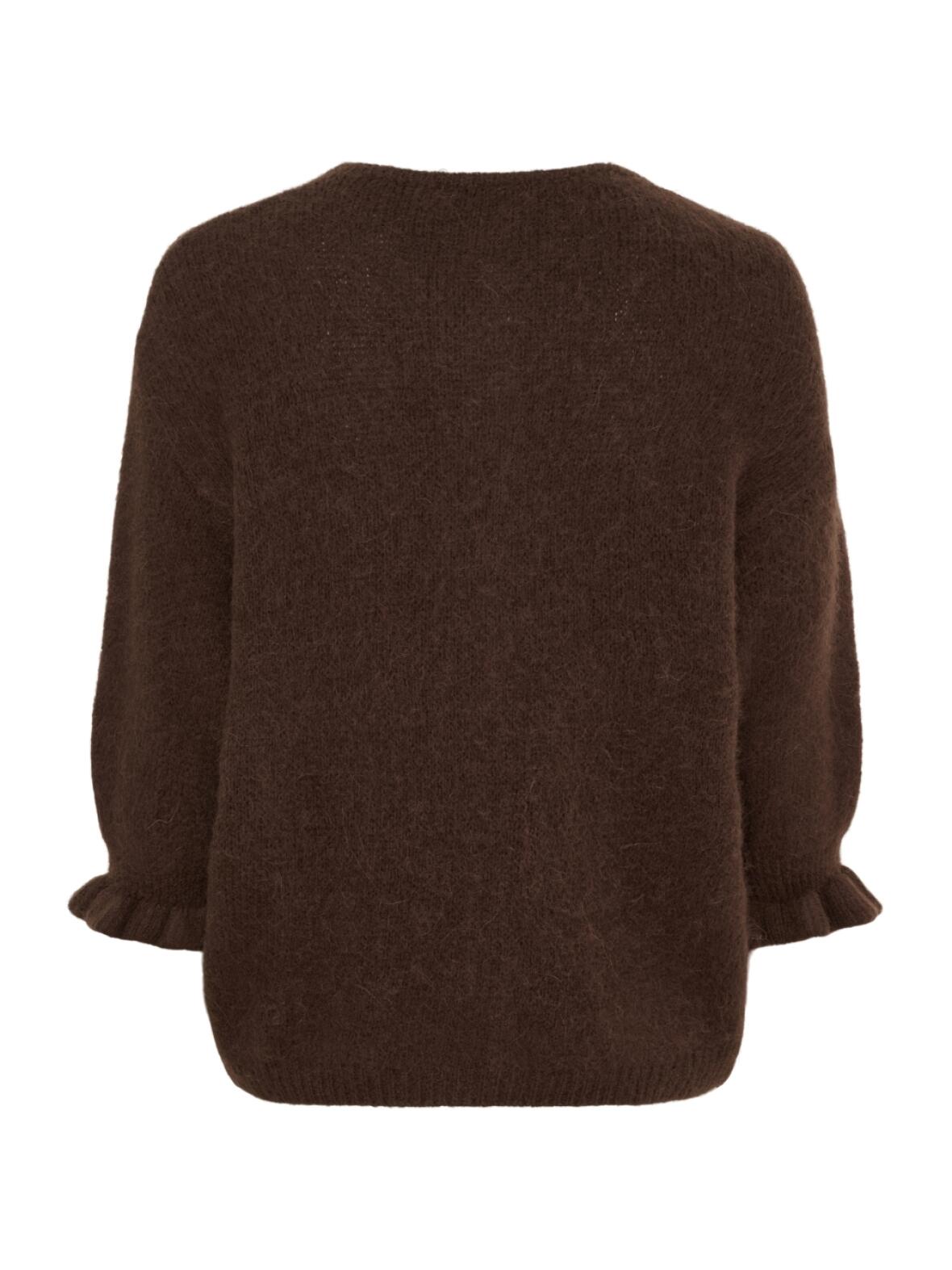 Juliana mørkebrun Cardigan fra Marta Du Château – en lækker cardigan med primært uld som du ikke har lyst til at tage af igen. Det er detaljerne, som gør den særlig. Hvis du kan lide 3/4 ærmer med flæsedetaljer og små knapper med lidt marmor-effekt, ja så har du fundet en favorit til garderoben.