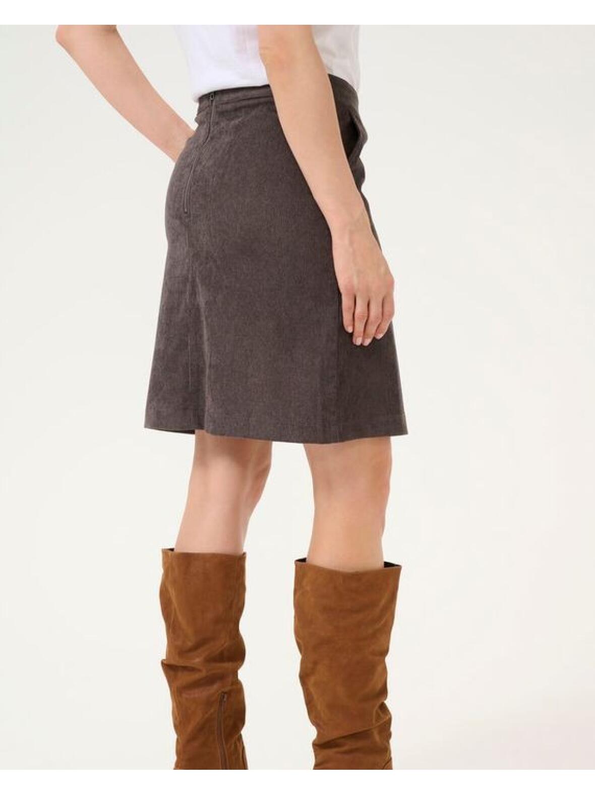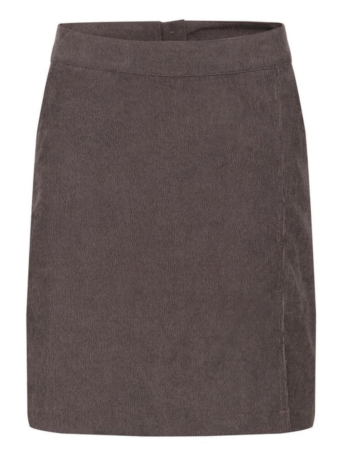 Flot nyhed fra Kaffe med den her flotte Vera fløjlsnederdel. Denne lette A-formede nederdel er lavet af smalriflet fløjl, hvilket sikrer en behagelig pasform og samtidig et elegant udseende. Den jordbrune farve gør den alsidig og nem at style med dine yndlingsbluser og sko, hvilket gør den til en garderobefavorit.