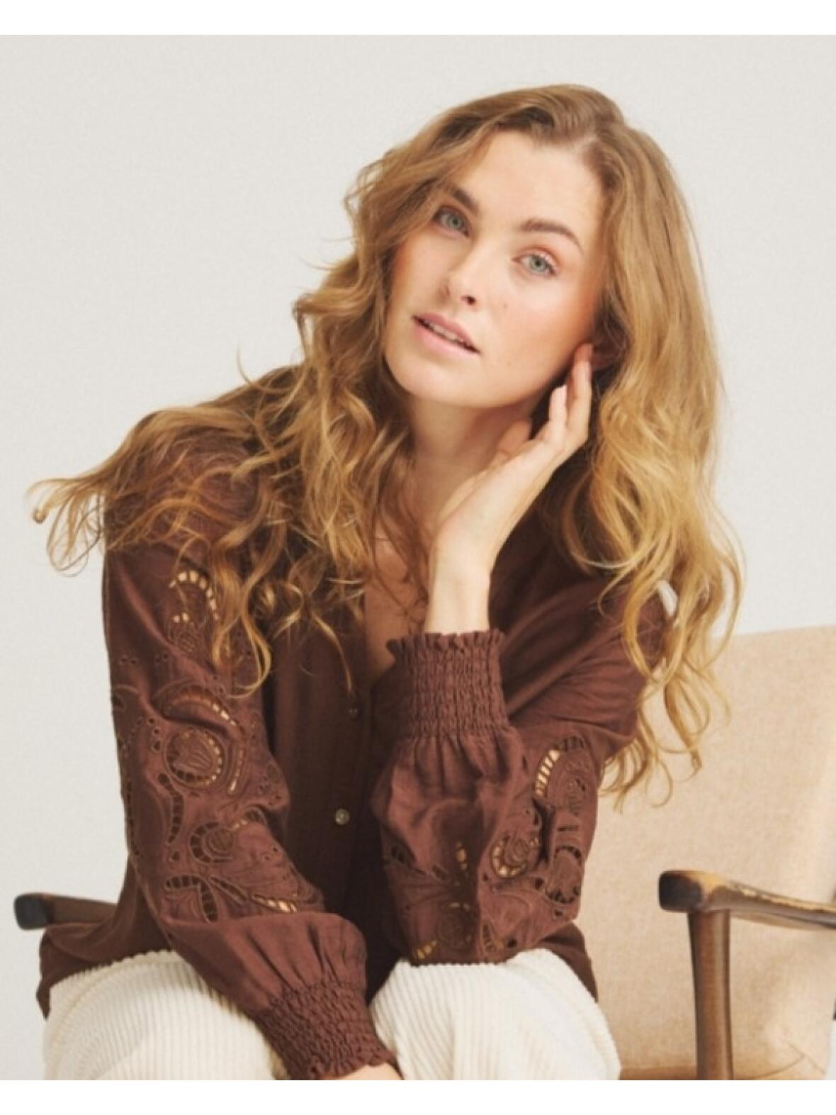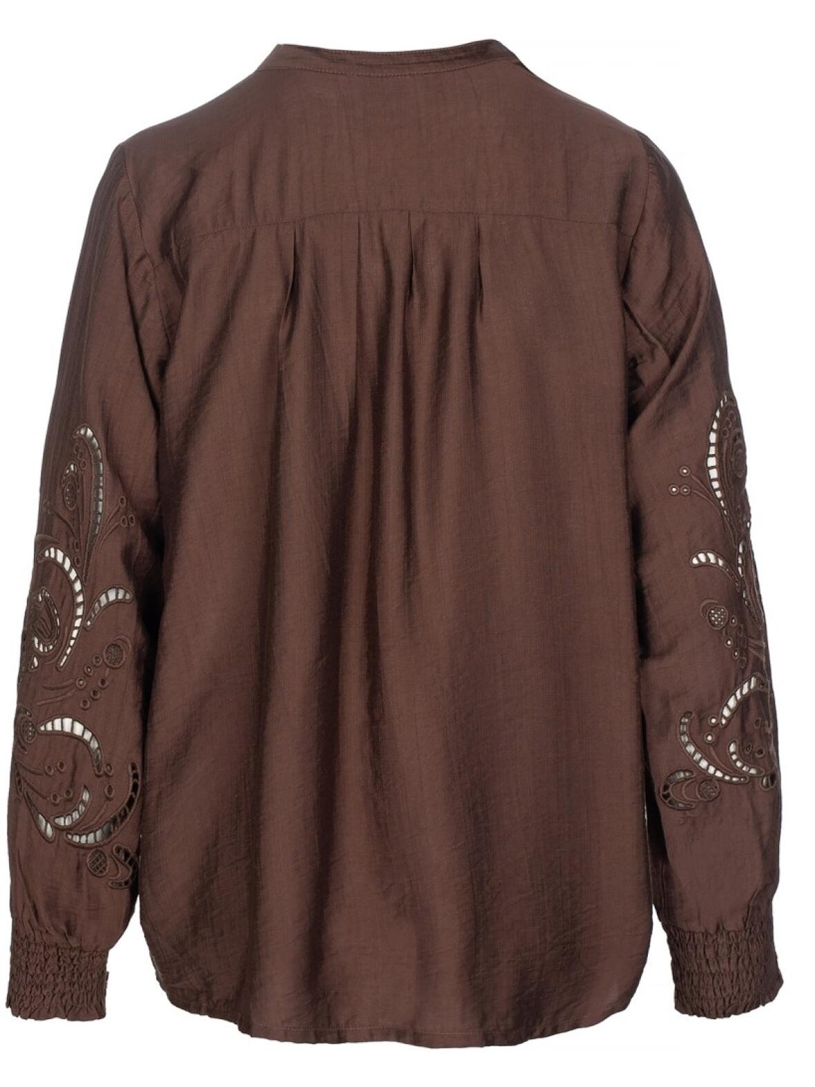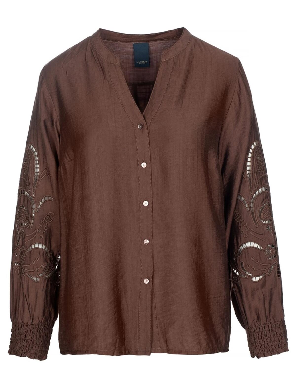 Skjorten er designet i en let, glansfuld kvalitet, der falder flot på kroppen. De broderede detaljer og udskæringer på ærmerne giver et unikt og eksklusivt look.