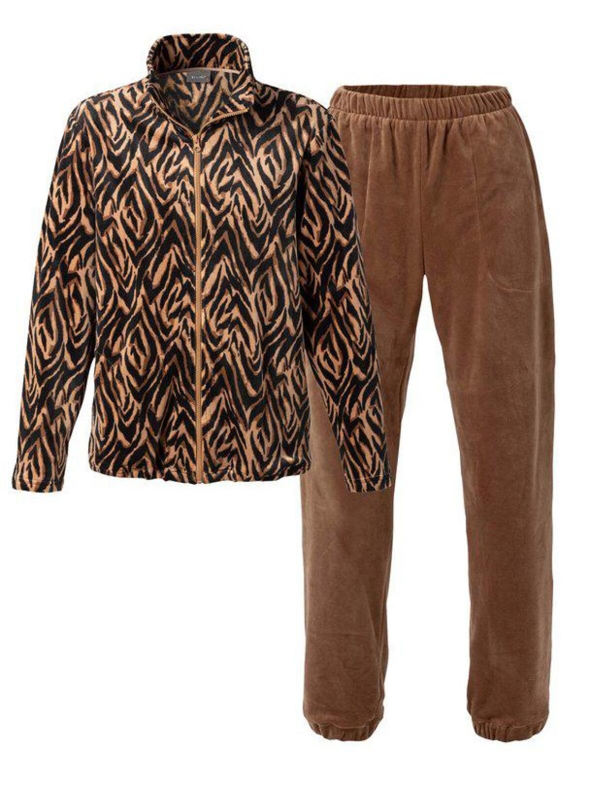 Elegant og behagelig hjemmedragt fra Trofé i blød velourkvalitet. Perfekt til afslapning derhjemme – samtidig med at du ser velklædt ud. Jakken har lynlås og lommer, mens bukserne har en afslappet og komfortabel pasform.
