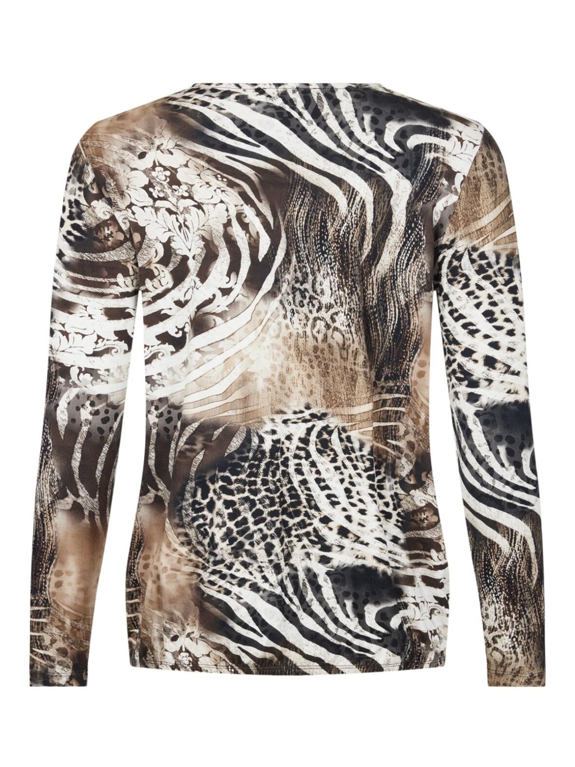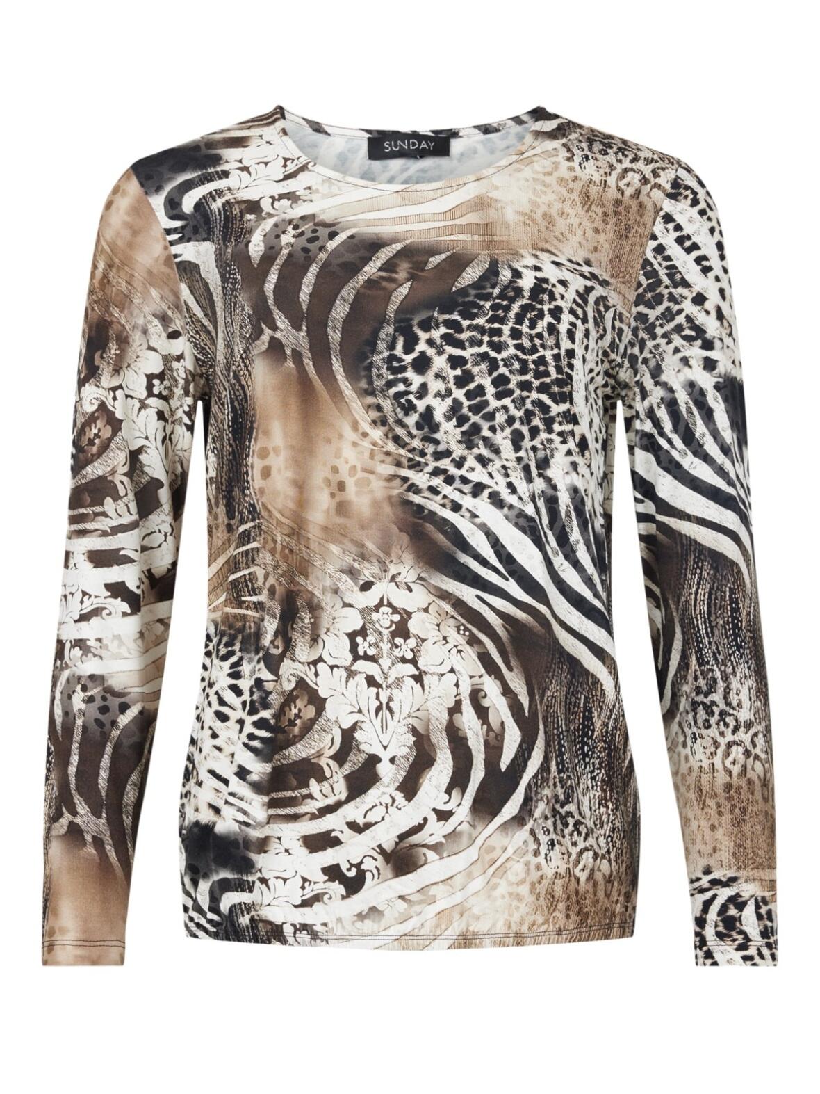 Denne skønne Sunday bluse (Style 6841) er designet med en flot dyreprint i brune, sorte og hvide nuancer.