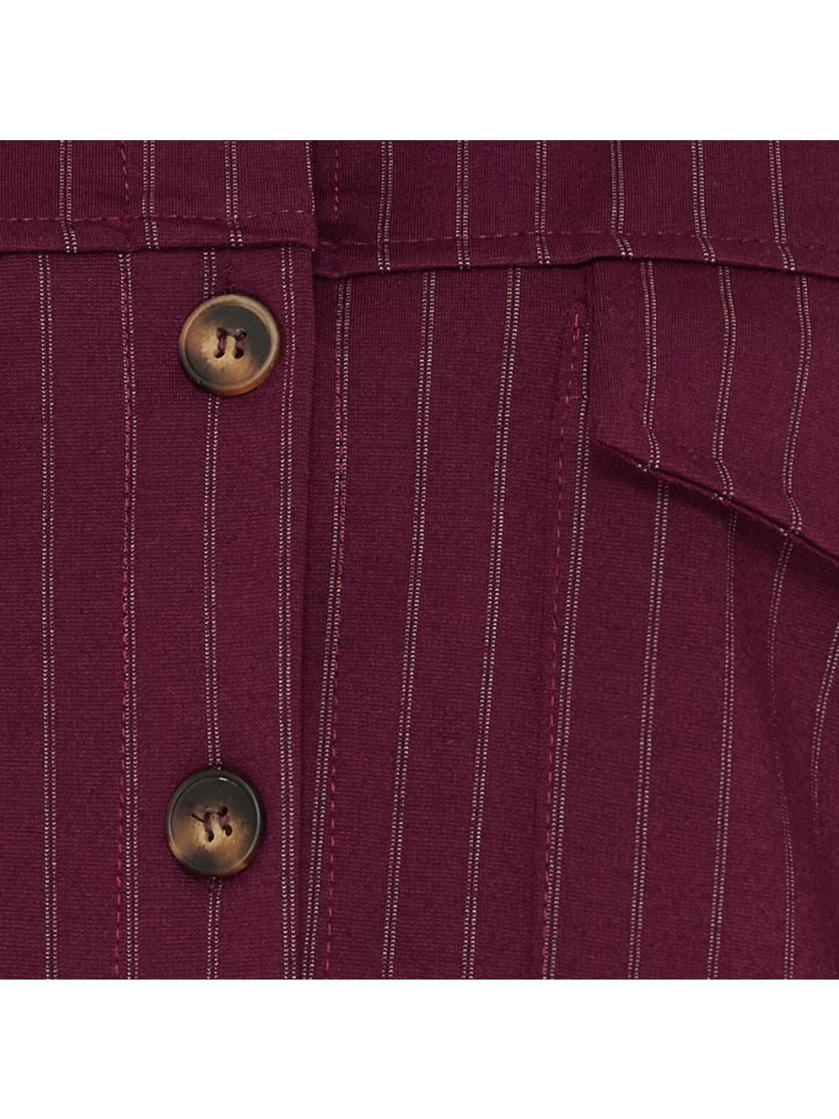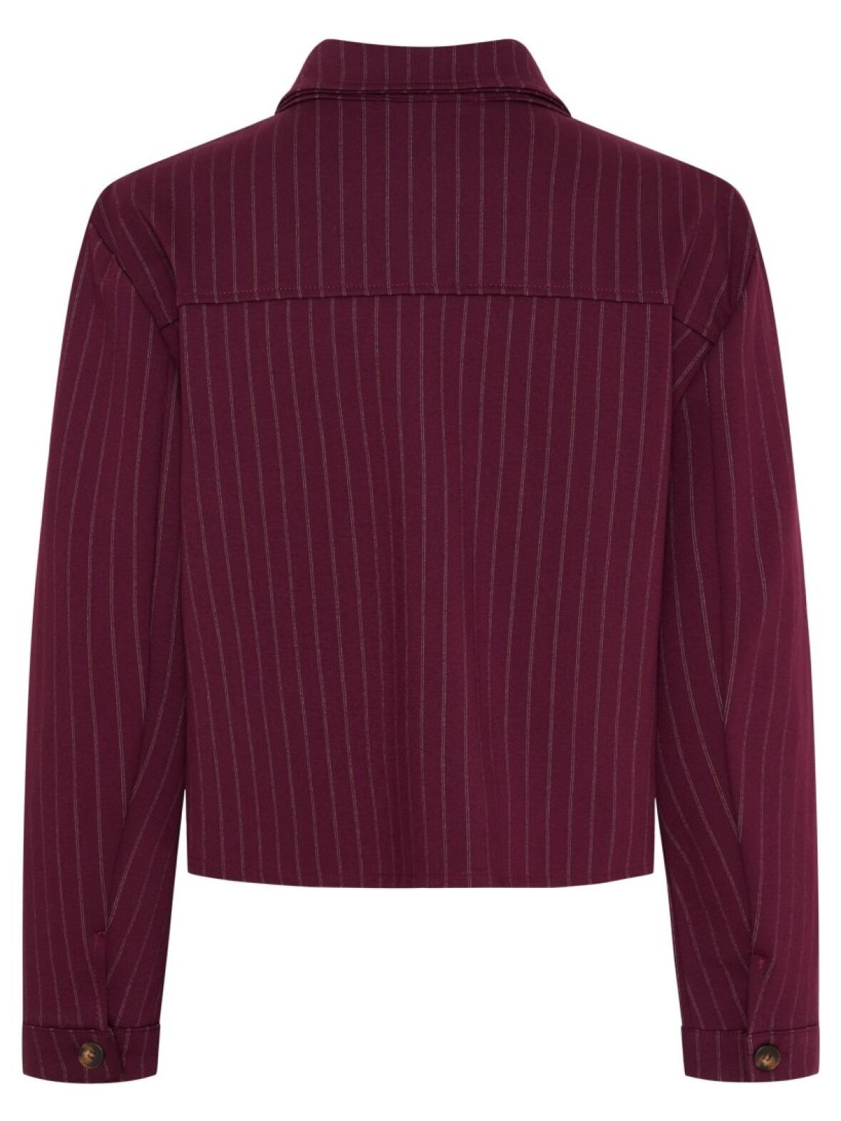Jakken med nålestribe har en kort, let boxy silhuet med skjortekrave, knaplukning og brystlommer. Materialet med 43 % viscose, 19 % polyester og 5 % elastan giver blødhed og let stretch, så jakken falder pænt og føles behagelig hele dagen. Detaljerne og den dybe farve skaber et feminint og roligt udtryk, der fungerer både til hverdag og ved mere stilfulde lejligheder.