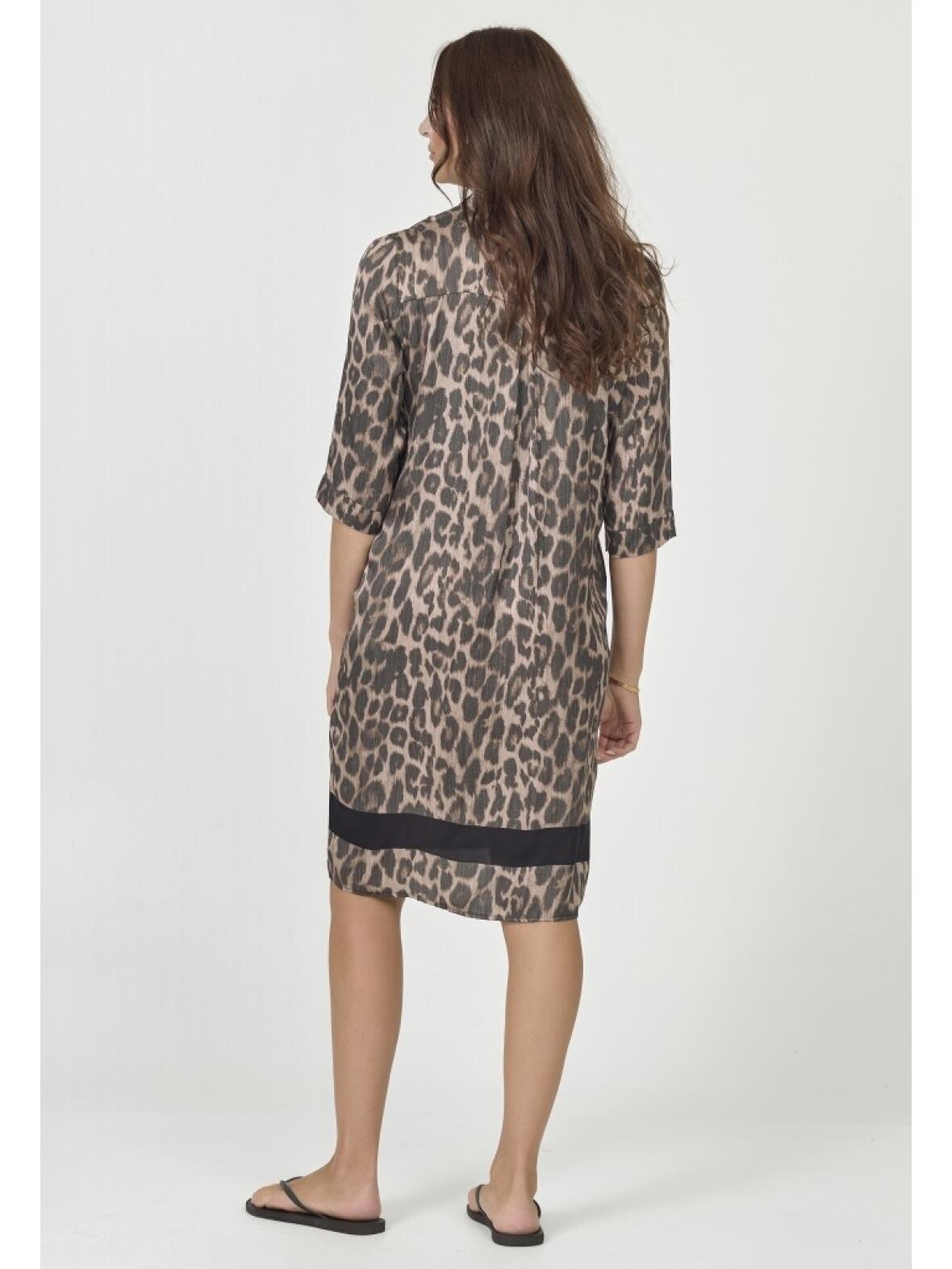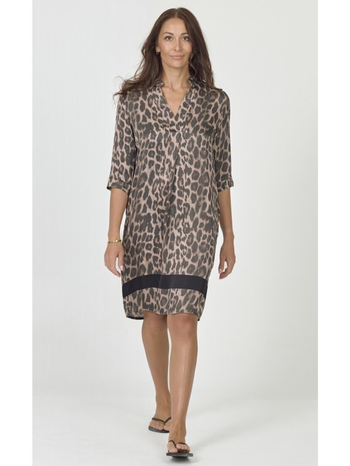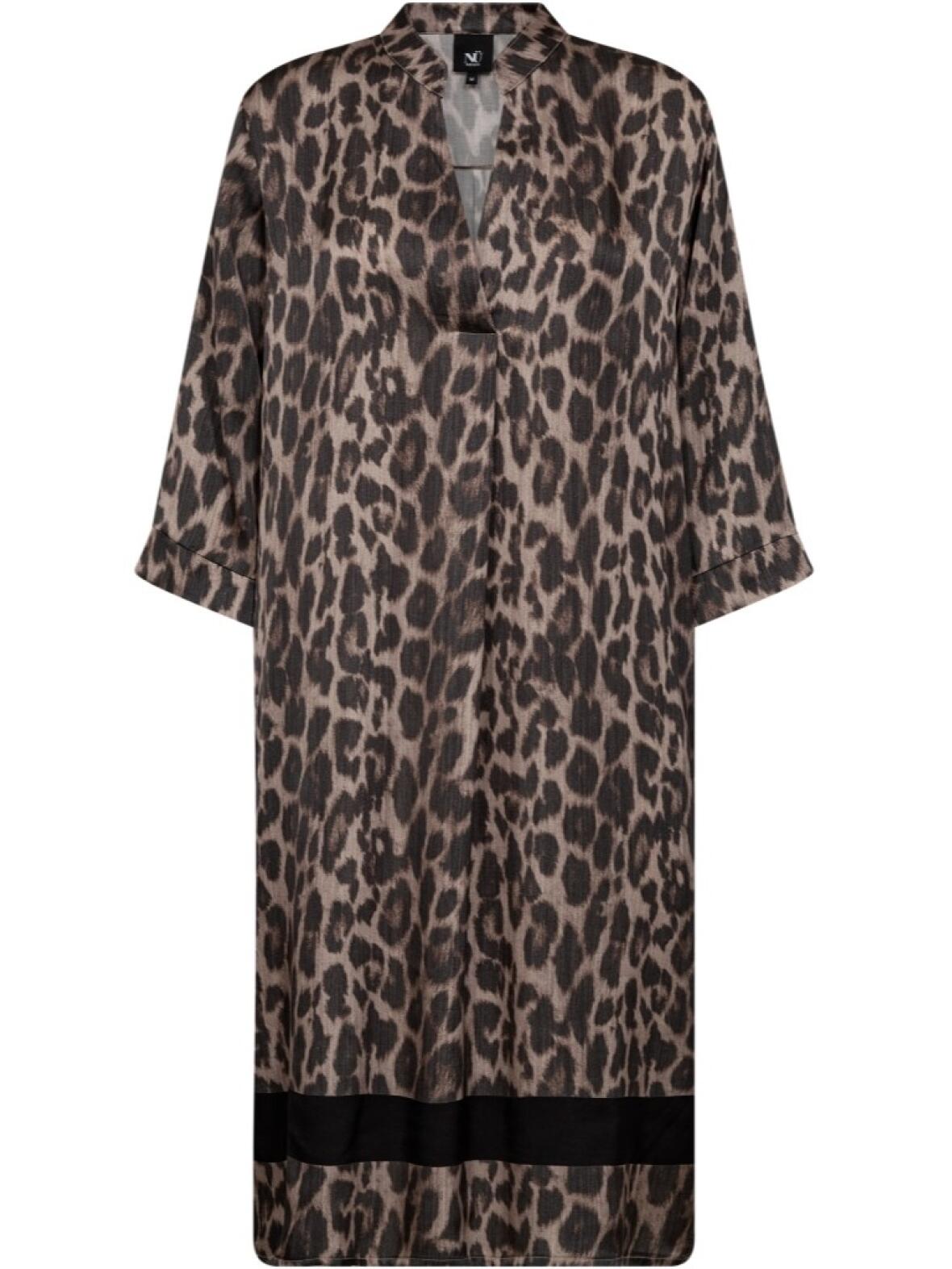 Nü Denmark Cilje kjole i koks grå leo-print og diskret sort kant nederst.