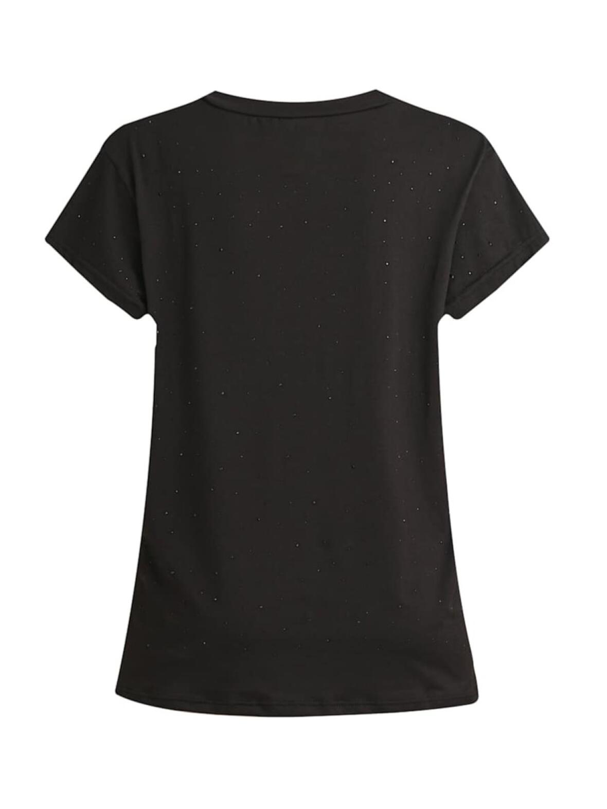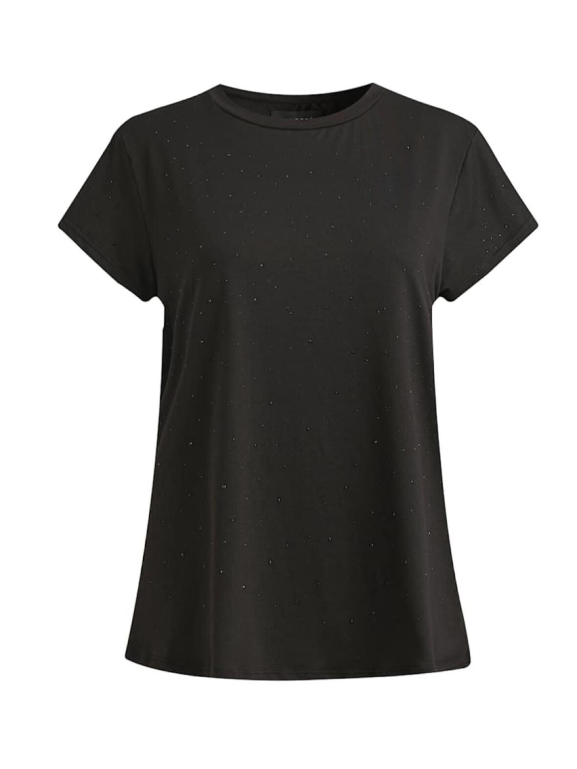 Alma t-shirt fra Libertè Essentiel i sort. En enkel og feminin t-shirt med rund hals og kort vingeærme, dekoreret med små sorte rhinsten for et diskret og sofistikeret udtryk.
