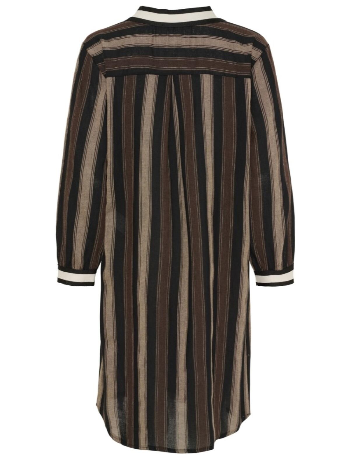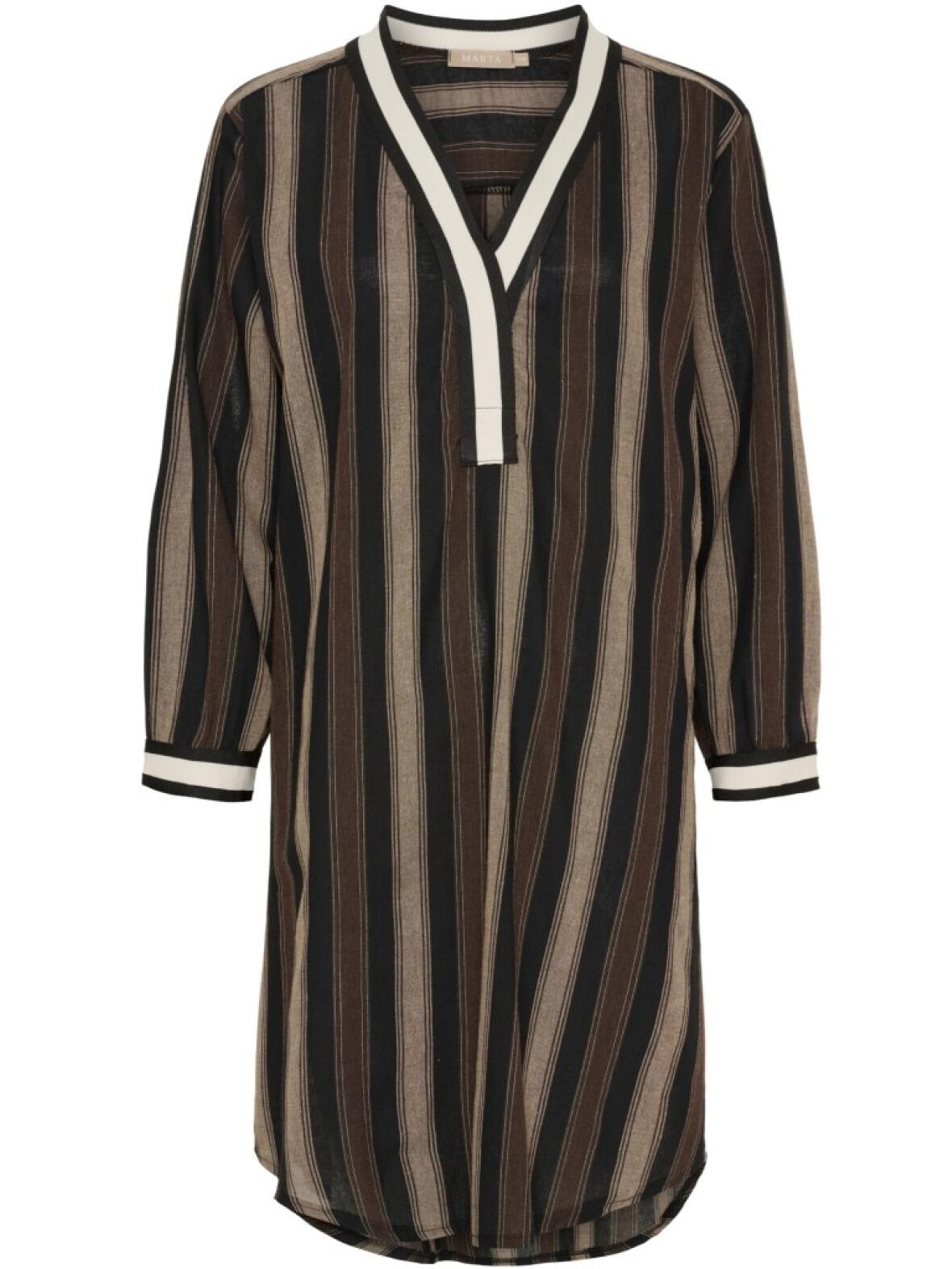 Saylor tunika/kjole fra Marta Du Château i brun. Kjolen har lodrette striber i beige, brun og sort, der skaber et slankende og tidløst udtryk.