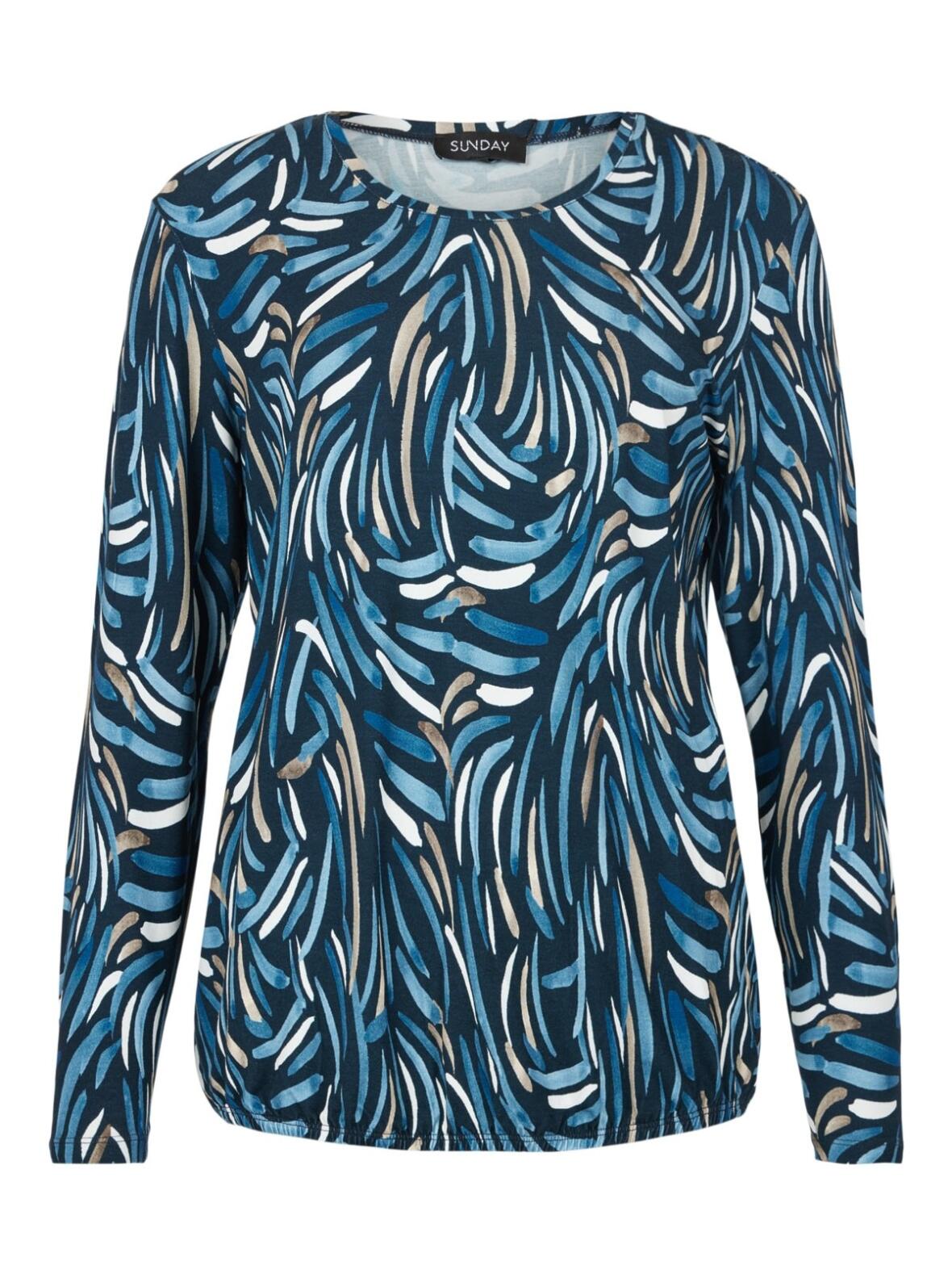 Bluse fra Sunday i marine. En bluse i dyb marineblå med lyseblå, beige og offwhite detaljer, designet til at tilføre garderoben ro og feminine nuancer.