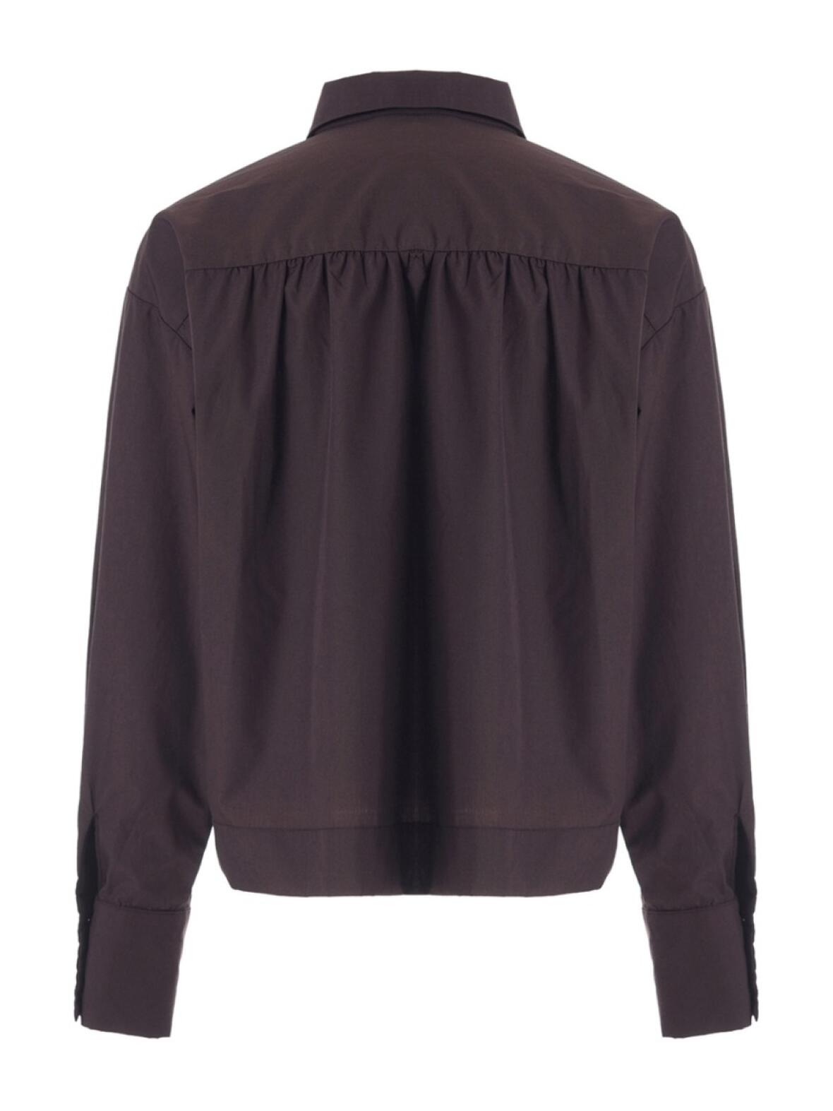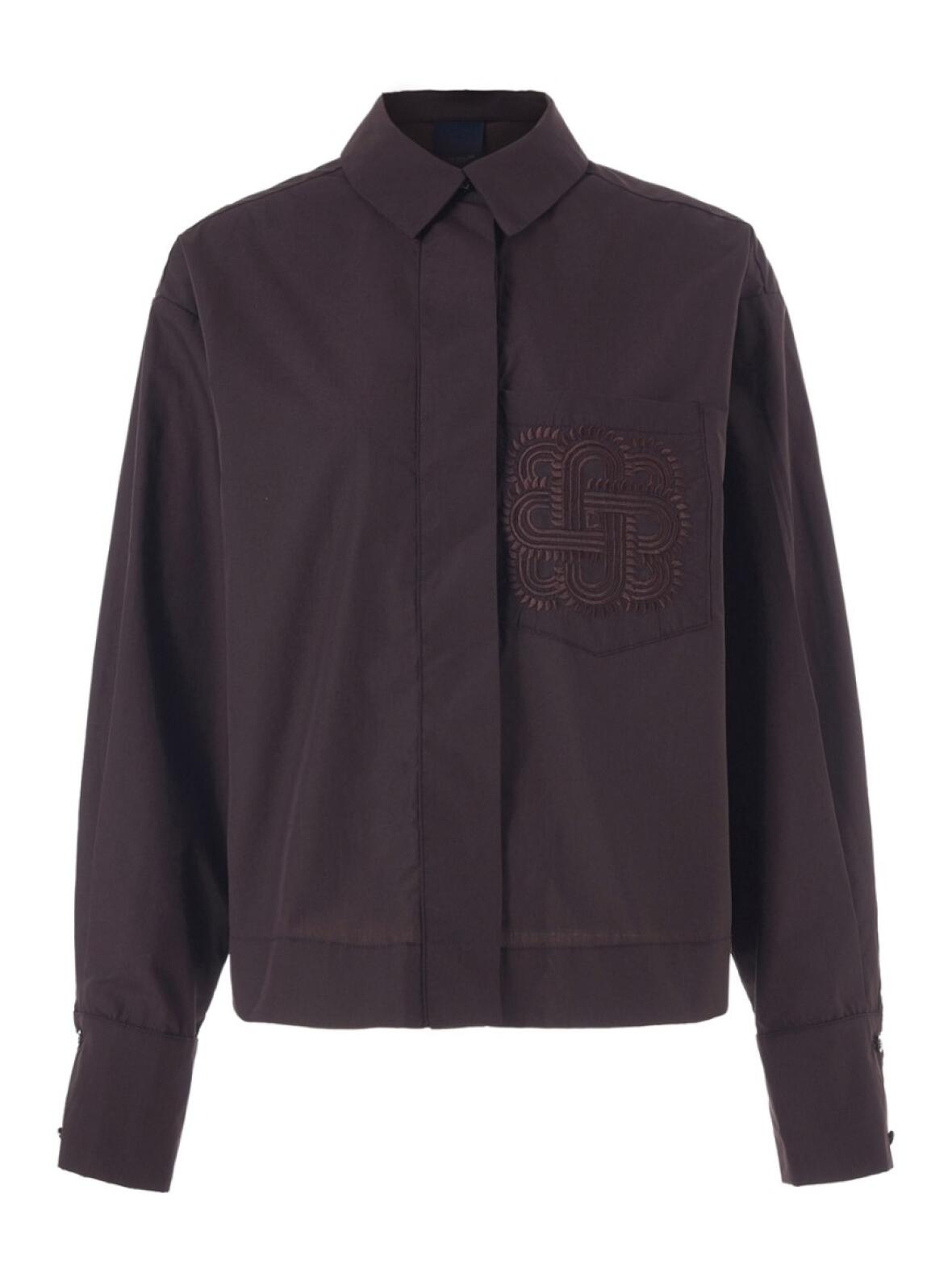 - Detaljer: Flipkrave, skjult knaplukning, brede manchetter med knapper, brystlomme med tone-i-tone broderi