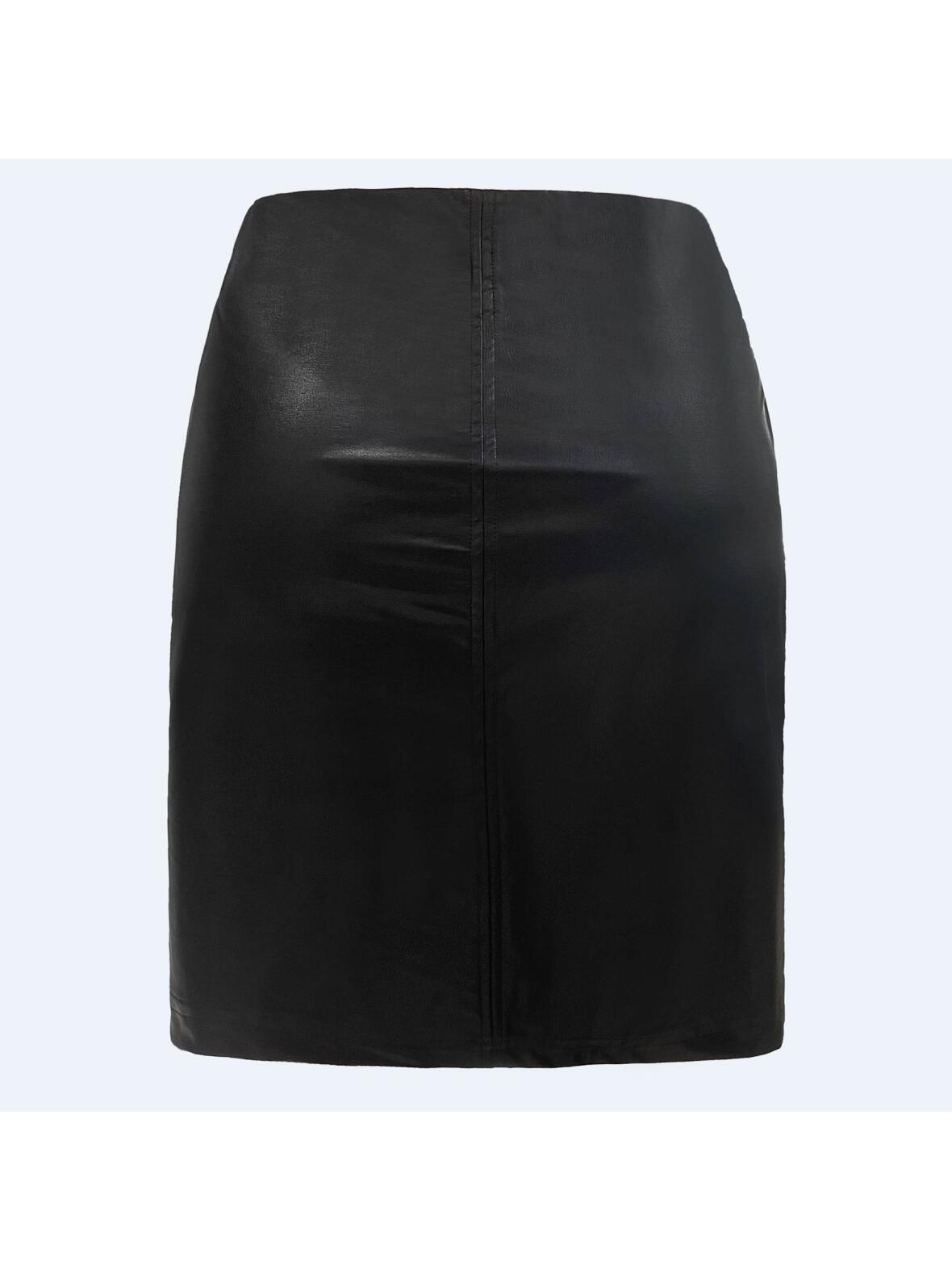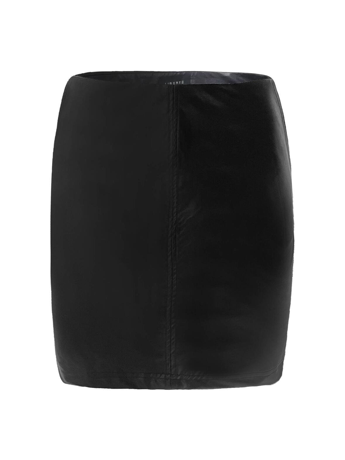 Pop nederdel fra Libertè Essentiel i sort. Fake skind nederdel med enkel, feminin udstråling og en rolig, moderne stil.