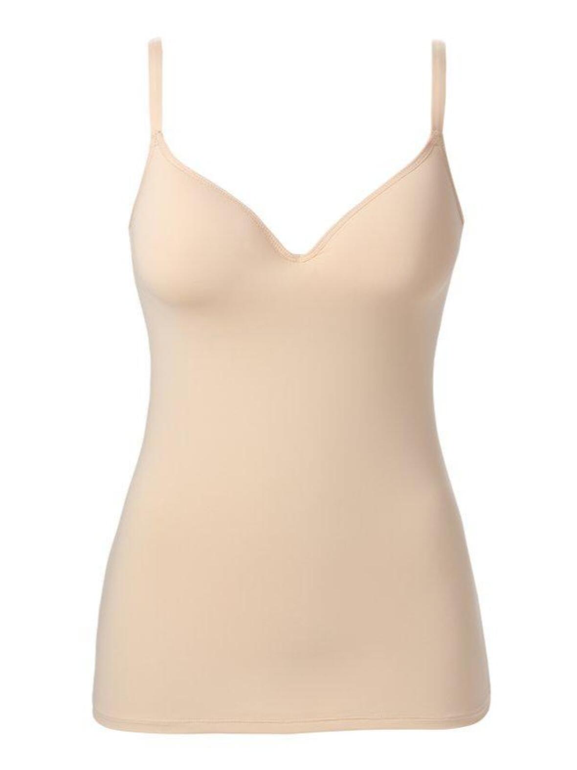 Designet er en bh-top med bøjle, udført i blødt, glat materiale, som understøtter og former uden at fylde. Stoffets sammensætning sikrer en fleksibel pasform og en diskret silhuet, ideel til hverdagsbrug når komfort og enkelthed prioriteres.