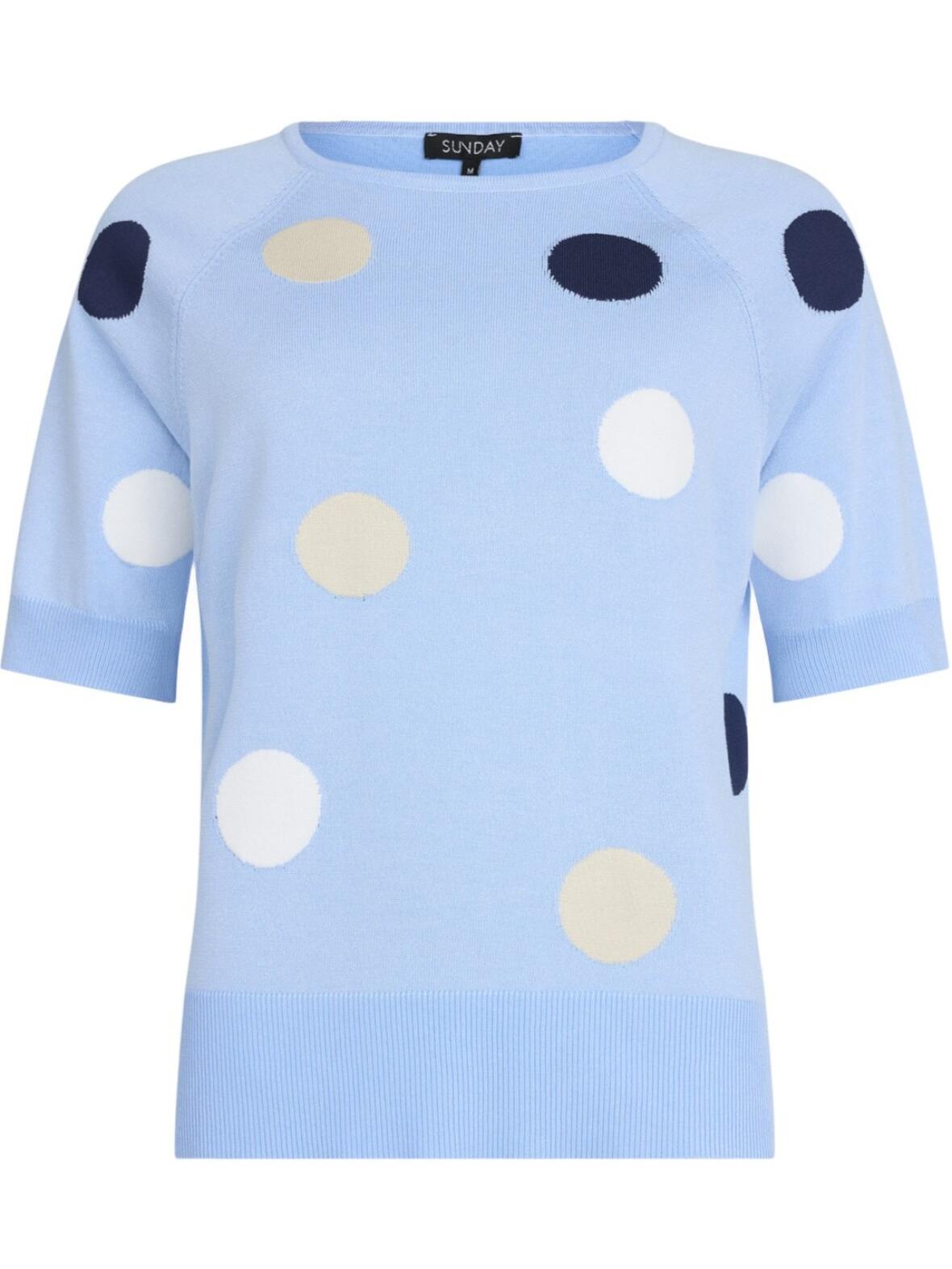 Lyseblå Strik fra Sunday . En blød strikbluse med rund hals og et roligt, feminint udtryk.