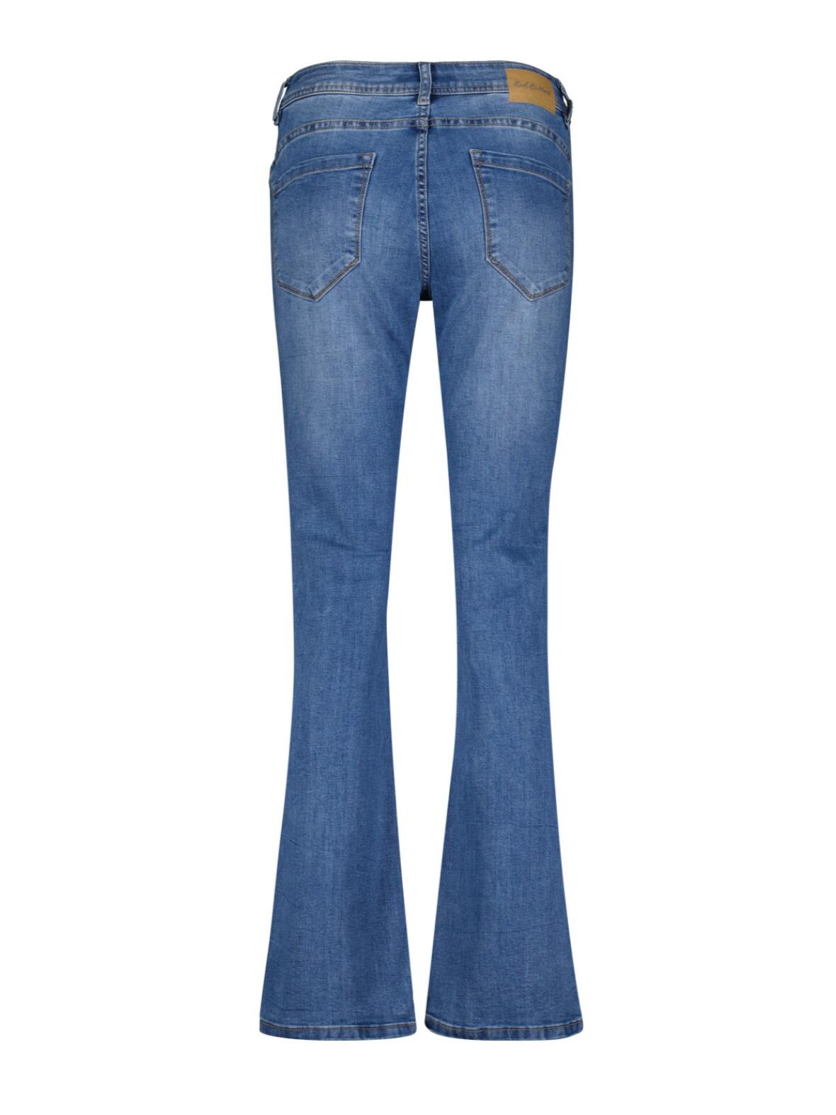 Babette denim Jeans fra Red Button med bootcut jeans i mellemblå denim vask med diskret slitage og en rolig, feminin udstråling.