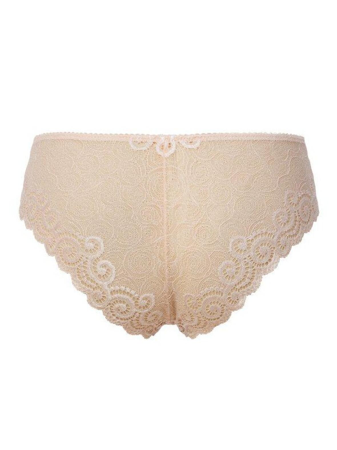 Tangaen er en Trofé Irene brazilian trusse med blonde, udført i blødt, elastisk materiale der følger kroppens former. Den har en lavt skåret brazilian pasform, som giver en flatterende silhuet uden at gå på kompromis med komforten. Stemningen er rolig og feminin med et subtilt, romantisk udtryk.