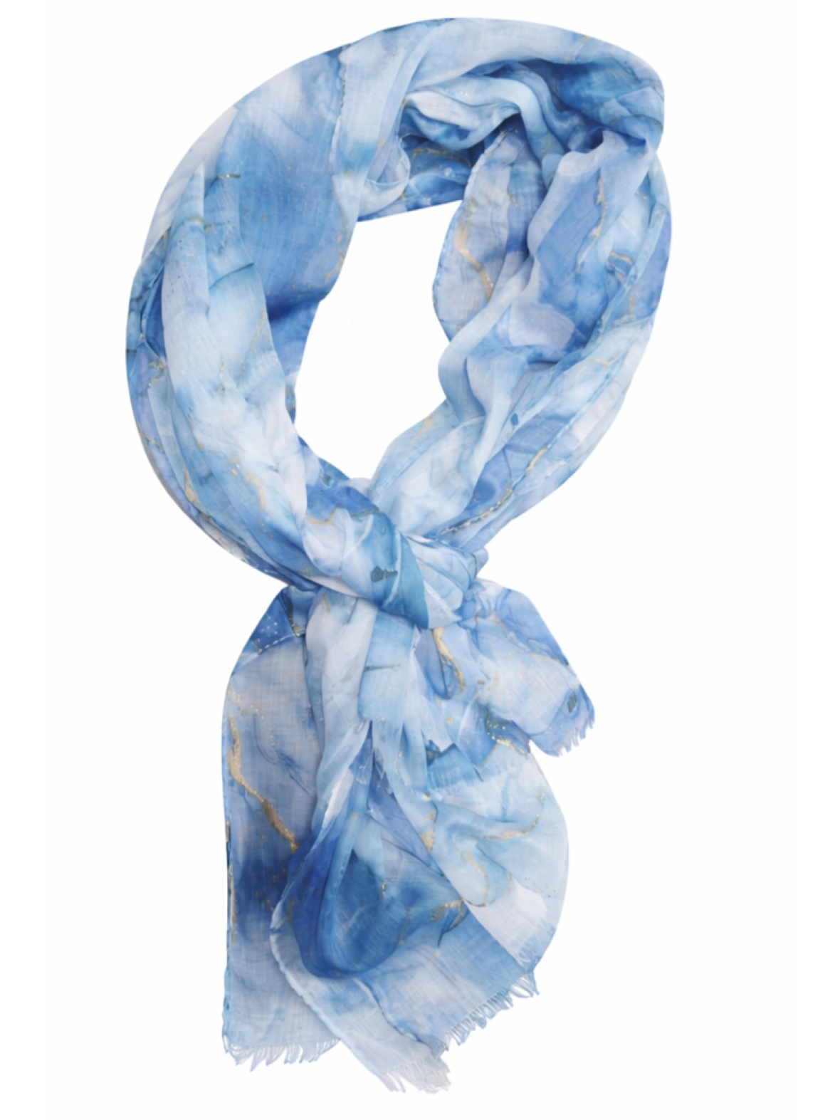 Vanting tørklæde i 100 % viscose med aqua lyseblå toner og et diskret guldprint. Stoffet falder let og kan både draperes tæt om halsen eller hænge løst for et afslappet look. Mål og print skaber en rolig, sofistikeret stemning, der komplimenterer både neutrale og farverige outfits.