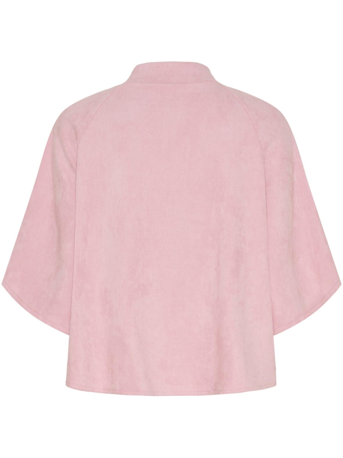 Britta kappe jakke fra Marta Du Château i en blid rosa nuance. Kunst ruskind, designet med en rolig og feminin æstetik.