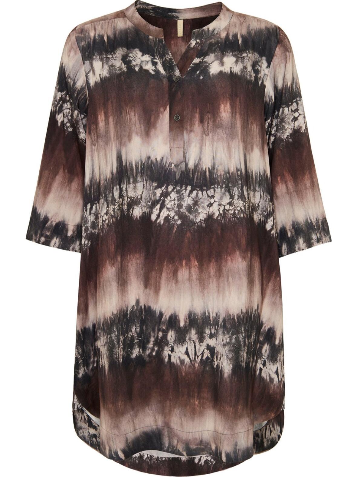 Jill tunika fra Ofelia i brun. En blød tunika med flot tie and dye i brunlige nuancer, designet til hverdagsbrug og rolige stunder.