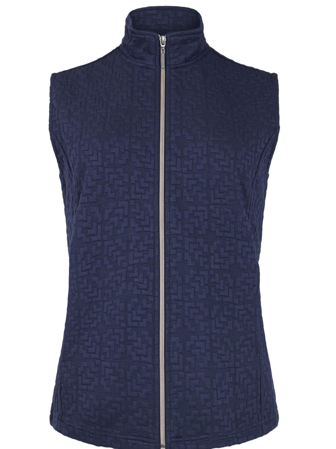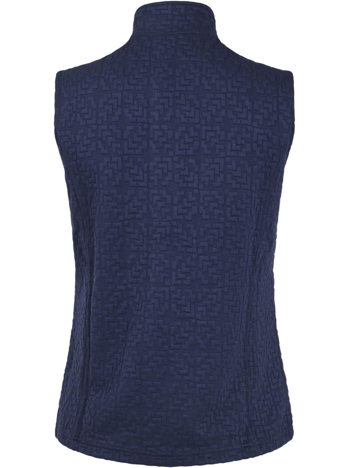 SU6007-69 Vest fra Sunday i farven Marine. En let og rolig stilklassiker med krave og lynlås, der giver et afdæmpet og feminint udtryk.