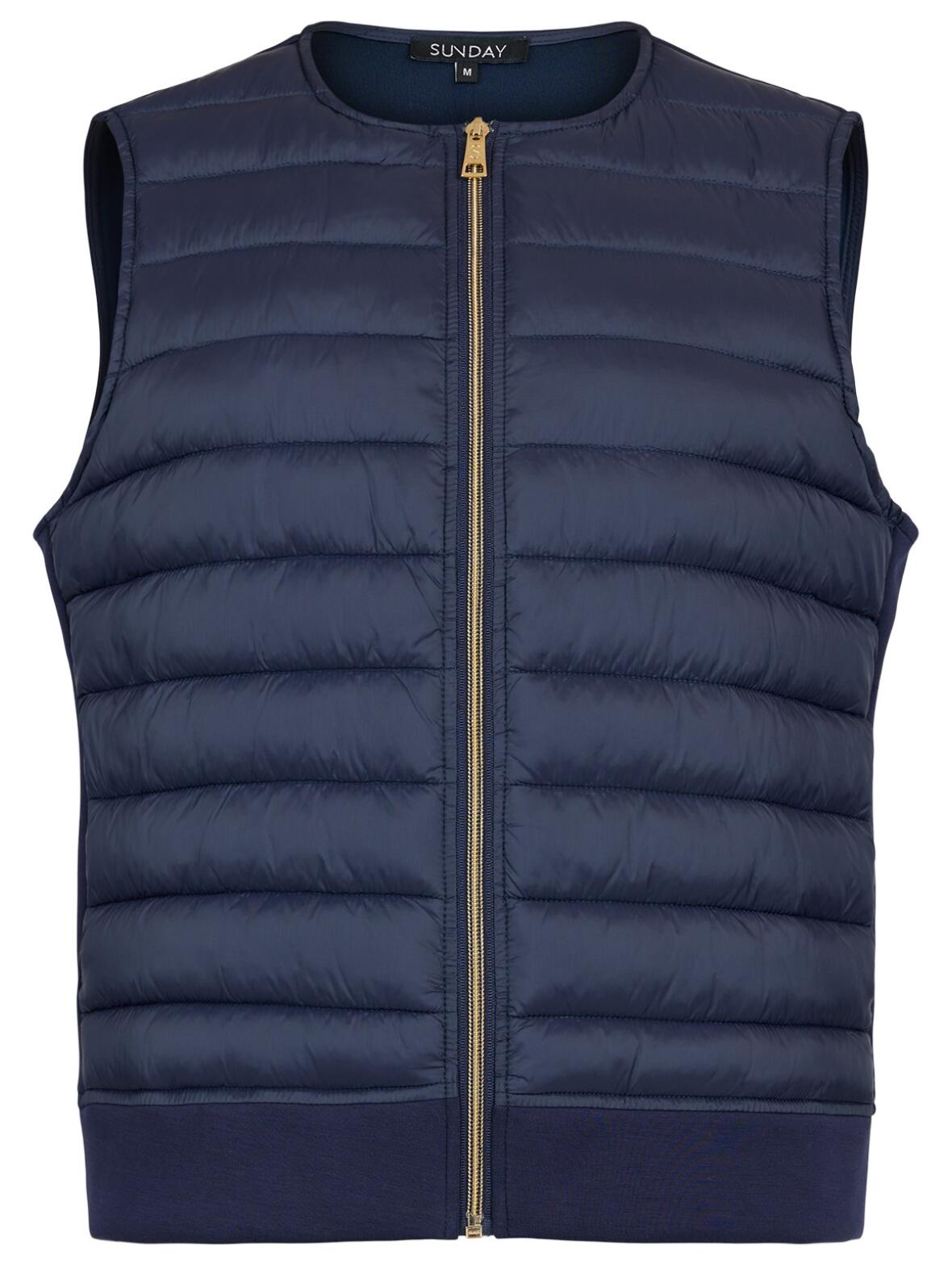 Vest fra Sunday i marine. En ny sporty vest med rund hals og lynlåslukning, der fungerer godt som lag-på-lag til både hverdag og weekend.