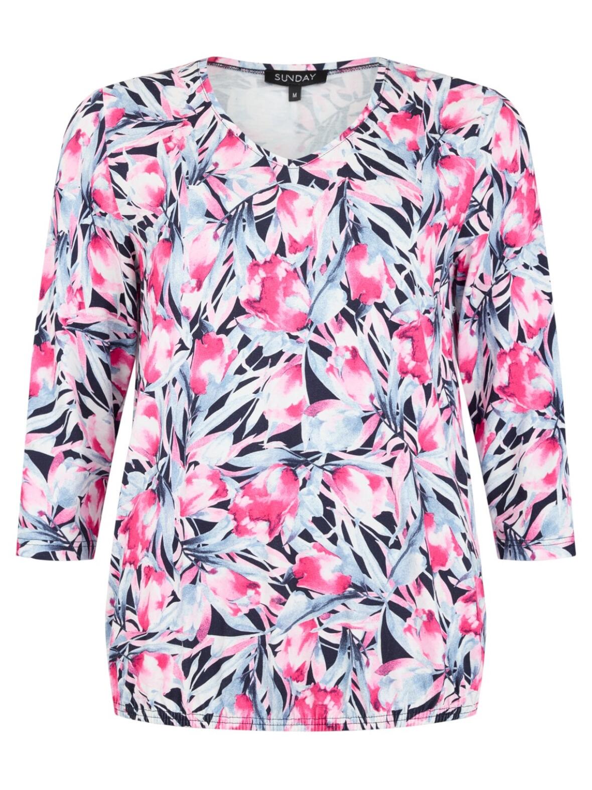 Bluse fra Sunday i pink print. En blød og feminin bluse, der giver et roligt og indbydende udtryk.