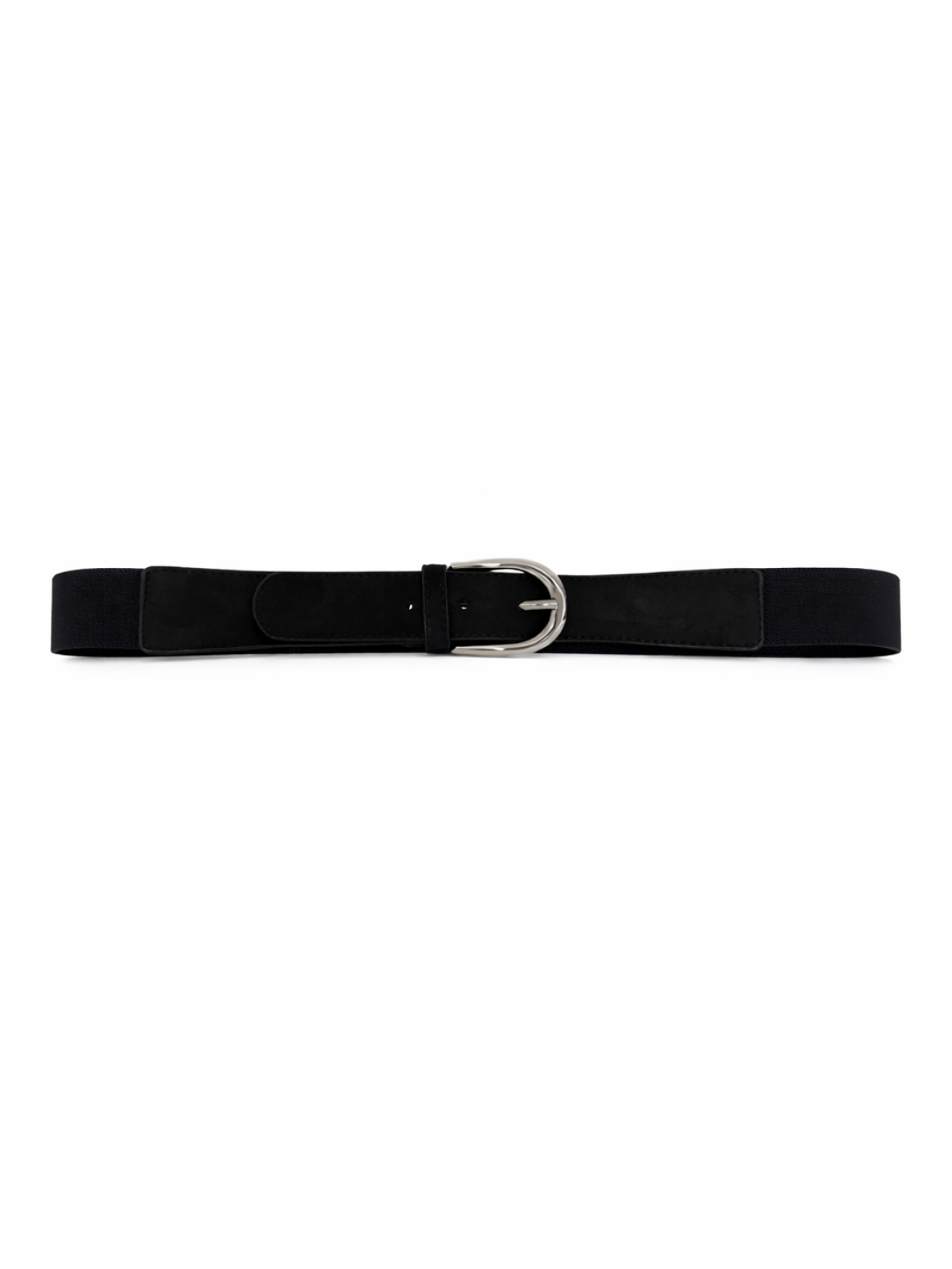 Bæltet er lavet i elastik med ruskindslook og har et diskret sølvspænde. De 3,5 cm bredde giver et velafbalanceret udtryk, og den elastiske pasform sidder behageligt omkring taljen uden at stramme. Stemningen er feminin og afdæmpet, velegnet til både kjoler og jeans for et sofistikeret men afslappet look.