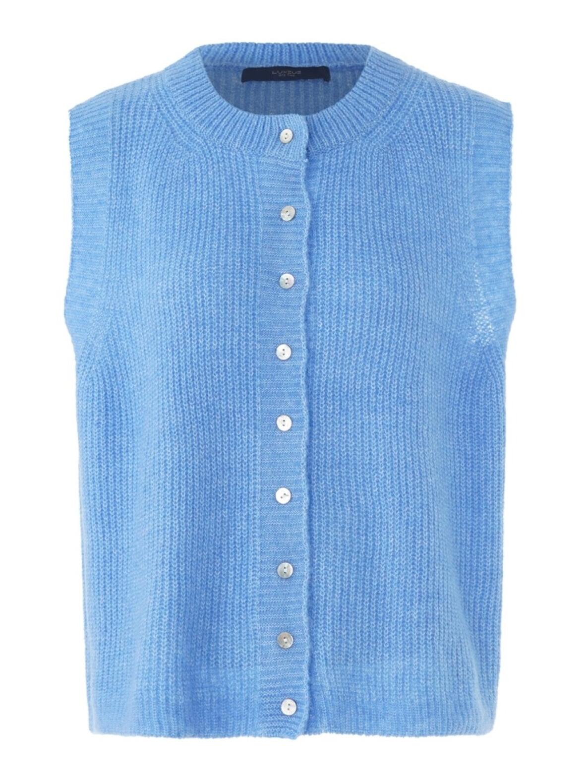 Bit Vest fra One Two Luxzuz i klar blå. En blød og tidløs strikvest fra One Two Luxzuz i en klar blå tone, der tilføjer et feminint og roligt præg til garderoben.