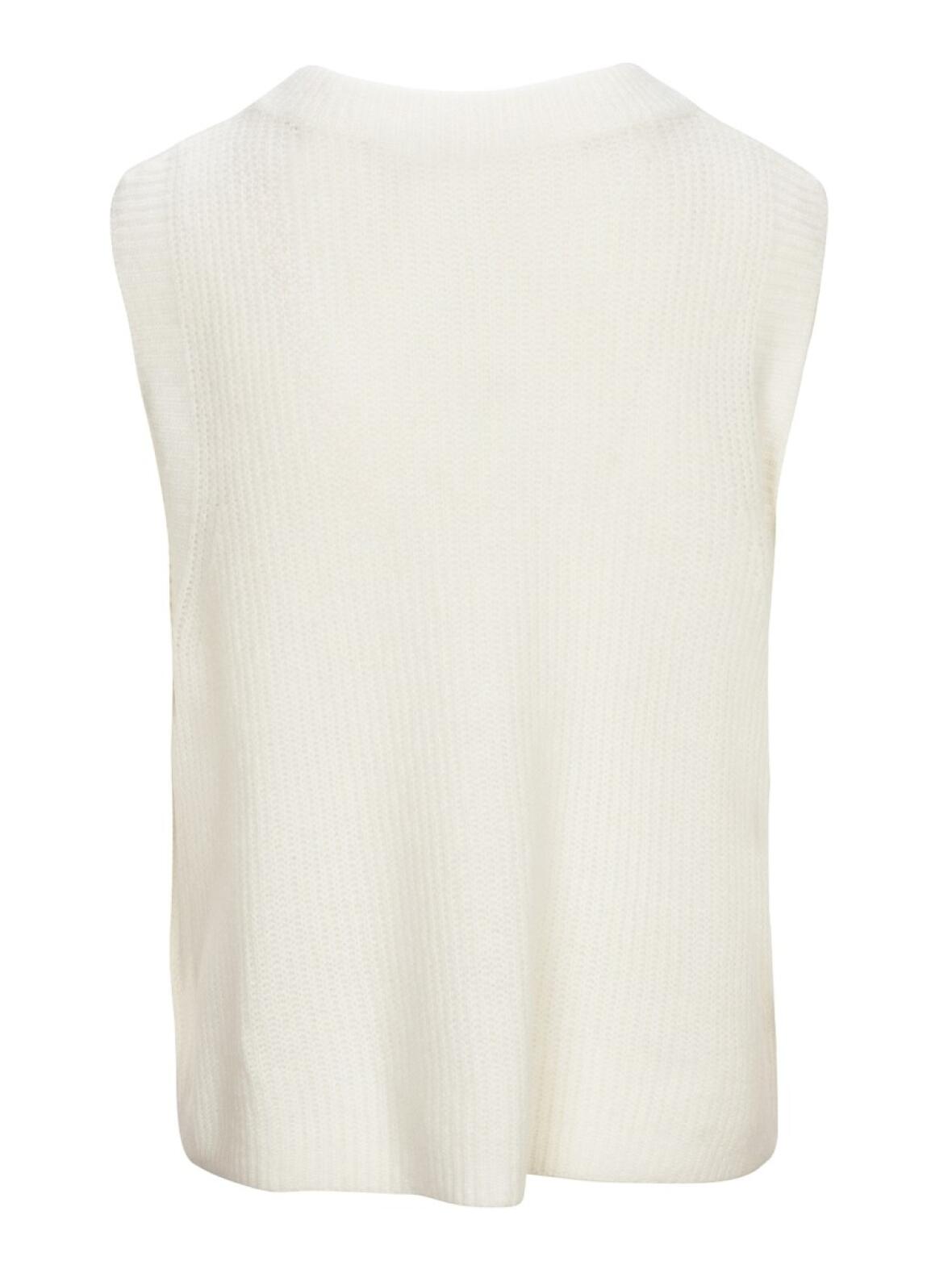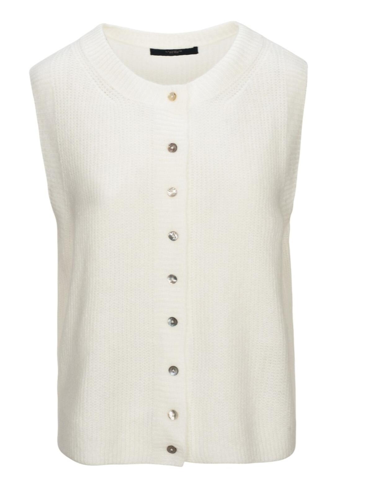 Bit vest fra One Two Luxzuz i off white. En blød og tidløs strikvest — Bit Vest fra One Two Luxzuz i offwhite — med klassiske knapper, der tilfører varme og et feminint, roligt udtryk til garderoben.