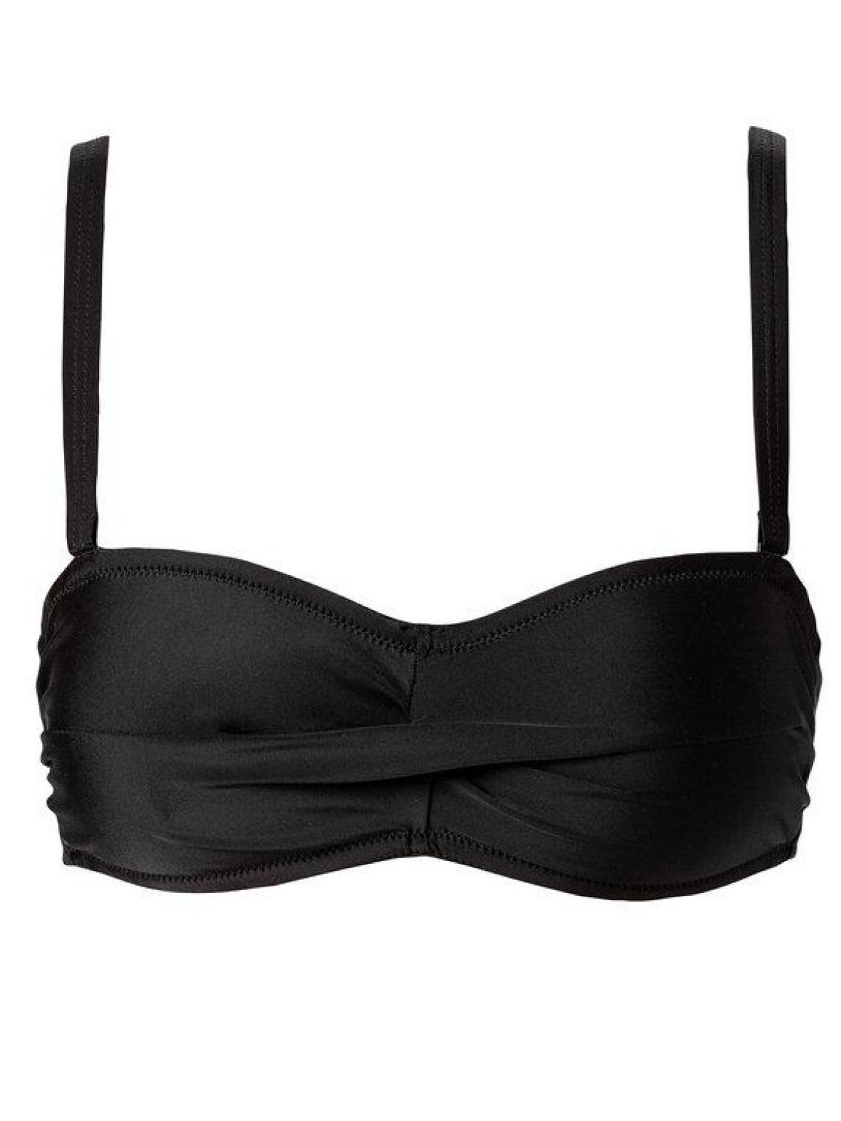 Trofé sort bikini overdel med let polstring og snoet drapering over brystet. Aftagelige stropper og bindebånd, som kan bindes om nakken, giver fleksibilitet i styling og støtte efter behov.