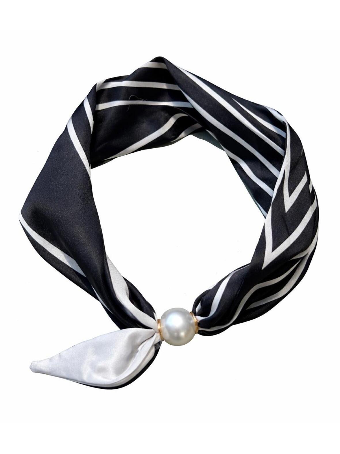 Tørklædet er lavet i satin viscose med en let glans og en blød, elegant drapering. Den diskrete perle magnetlås gør det nemt at sætte og sikrer, at det bliver på plads uden besvær. Designet giver et feminint og roligt udtryk, velegnet til både hverdag og fest, og fungerer som et delikat element i one-size pasformen.