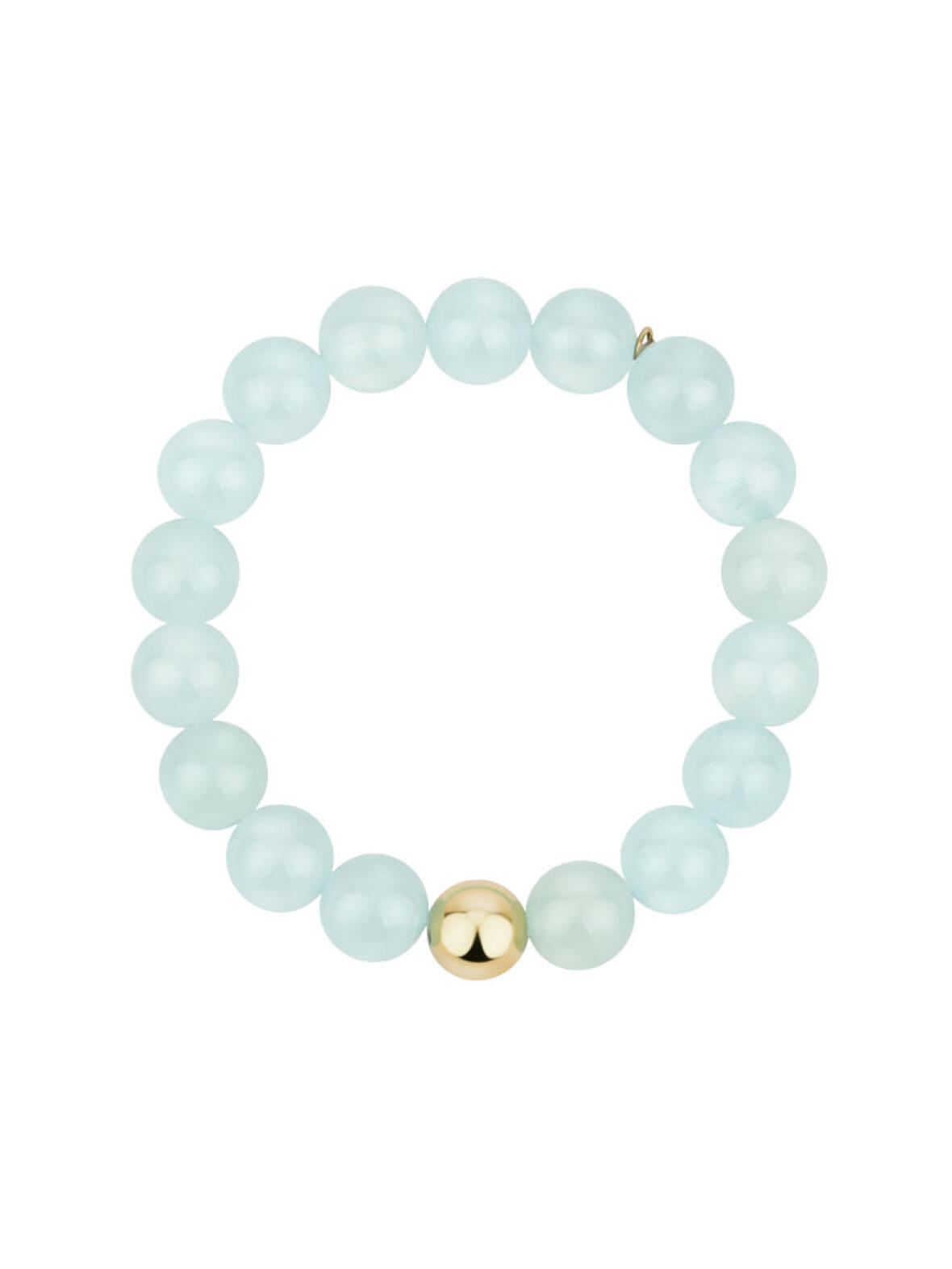 Bay by Aqua Dulce armbånd med mint perler og en enkel guldfarvet perle på elastiksnor. Det feminine design er enkelt og let, så armbåndet føles blødt mod håndleddet. Den elastiske snor giver en behagelig pasform, der passer de fleste, og kombinationen af mint og guldfarve skaber en rolig, elegant stemning, som passer til både hverdag og sart festtøj.