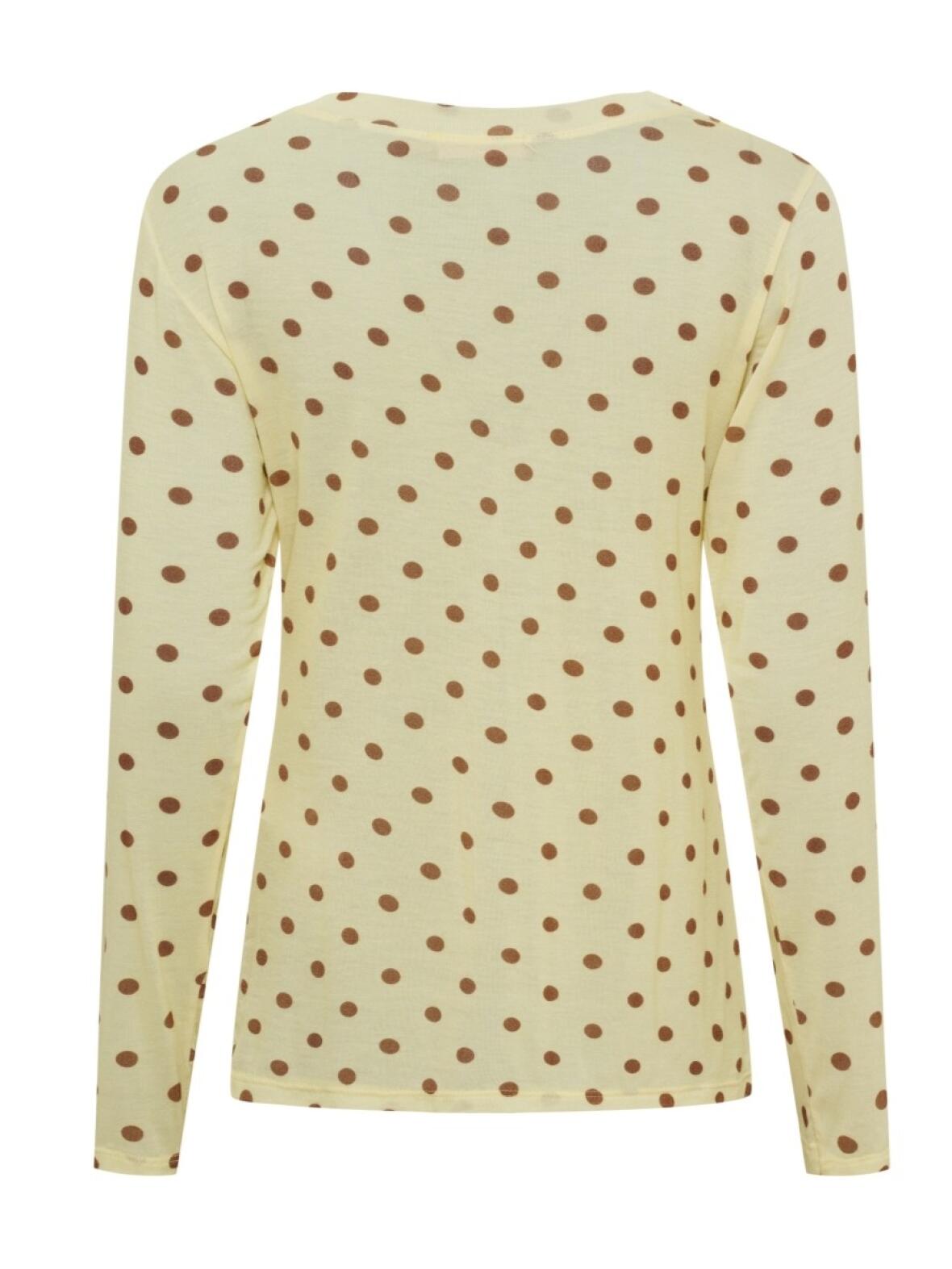 Mesh bluse fra Marta Du Château i gul. En let og feminin model med rolig udtryk, i sart gul med lyse brune bomber.