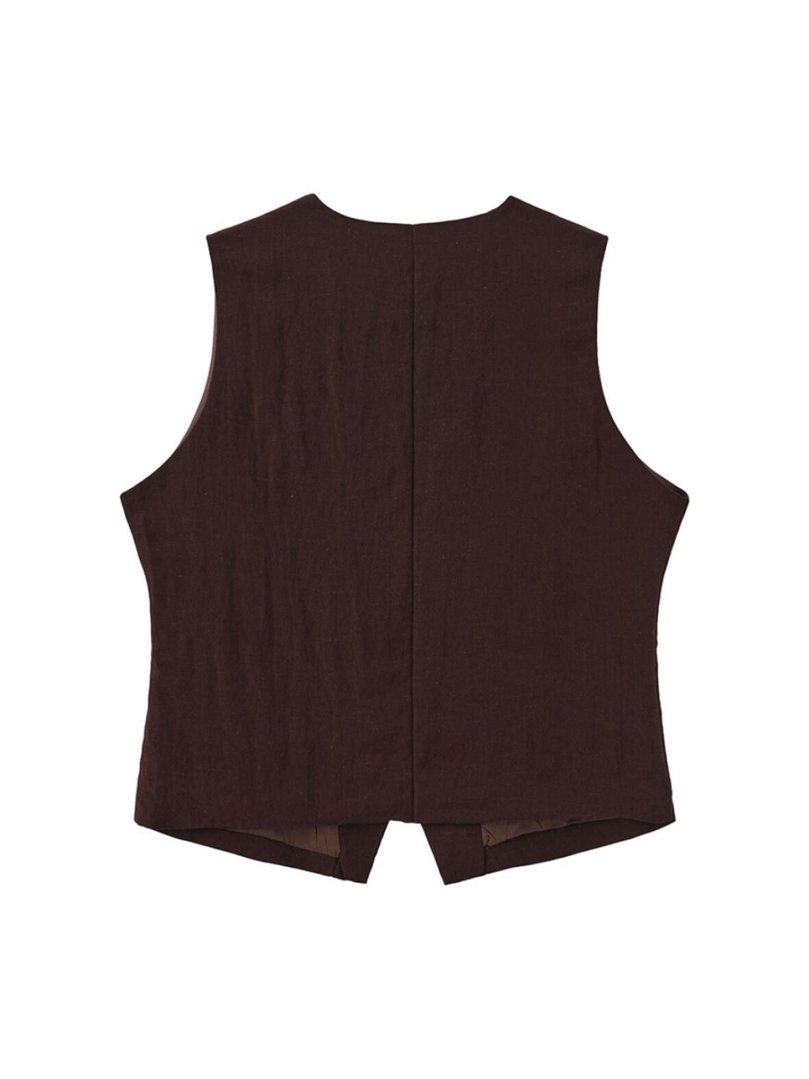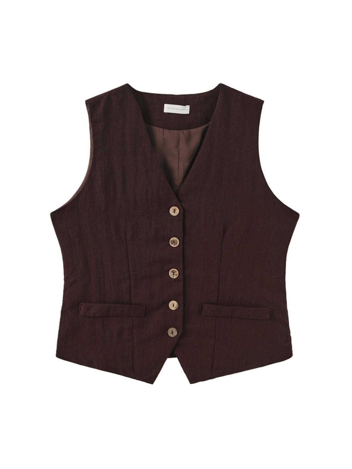 Vesten har et klassisk og roligt udtryk med knaplukning foran og faconsyet pasform. Den er foret for en blød fornemmelse og har snyde paspolerede lommer, som giver et let sofistikeret præg samtidig med en afslappet, feminin stemning.