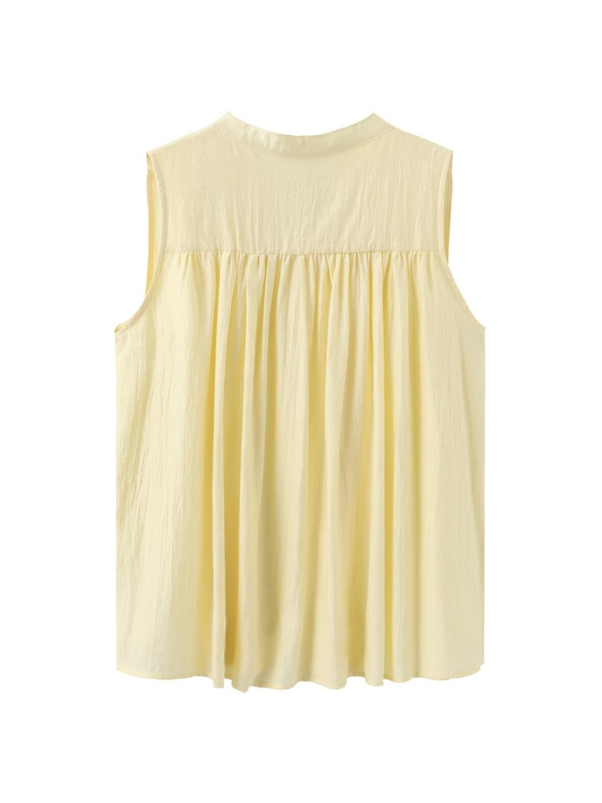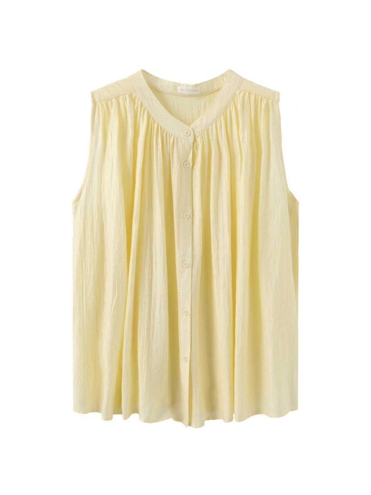 Top fra One Two Luxzuz i gul. En Agathe skjorte top med rund hals og knapper ned foran, designet til at føles let og behagelig.