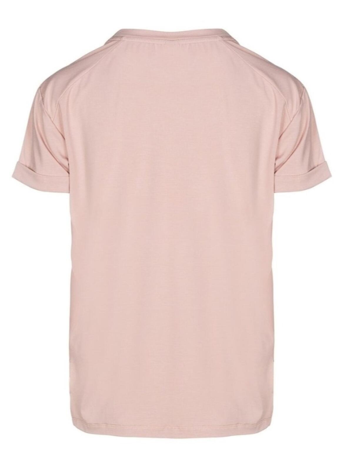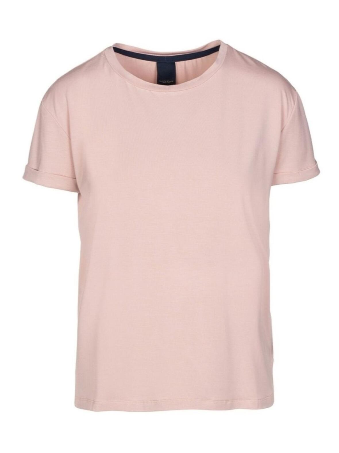 One Two Luxzuz Karin bambus t-shirt med rund hals og kort ærme i sart støvet rosa, designet til en enkel og elegant hverdags garderobe.