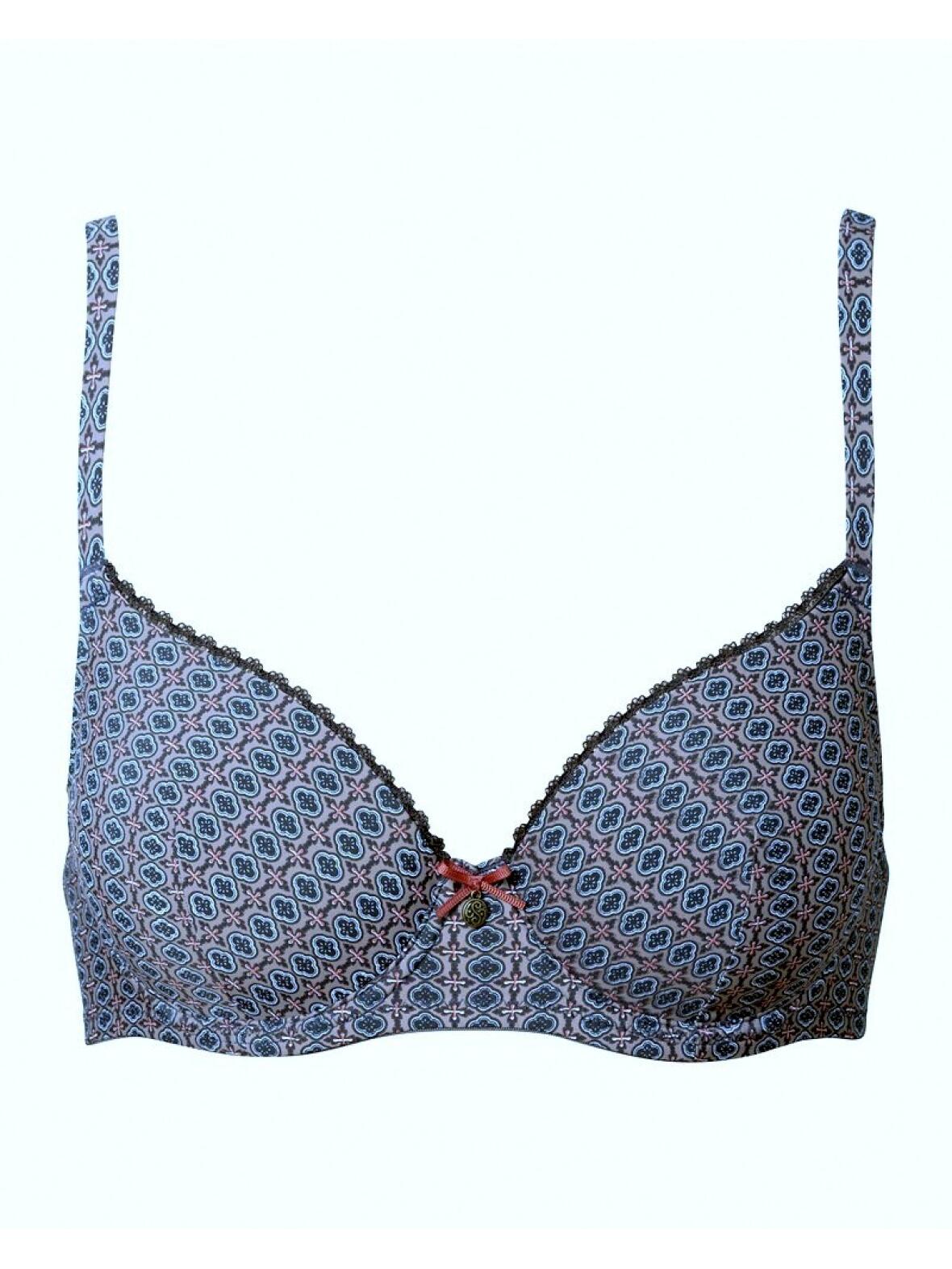 Trofè 10314 BH med bøjle og let polstring. BH én er i flot blåt mønster. Trusse 90314 passer til.