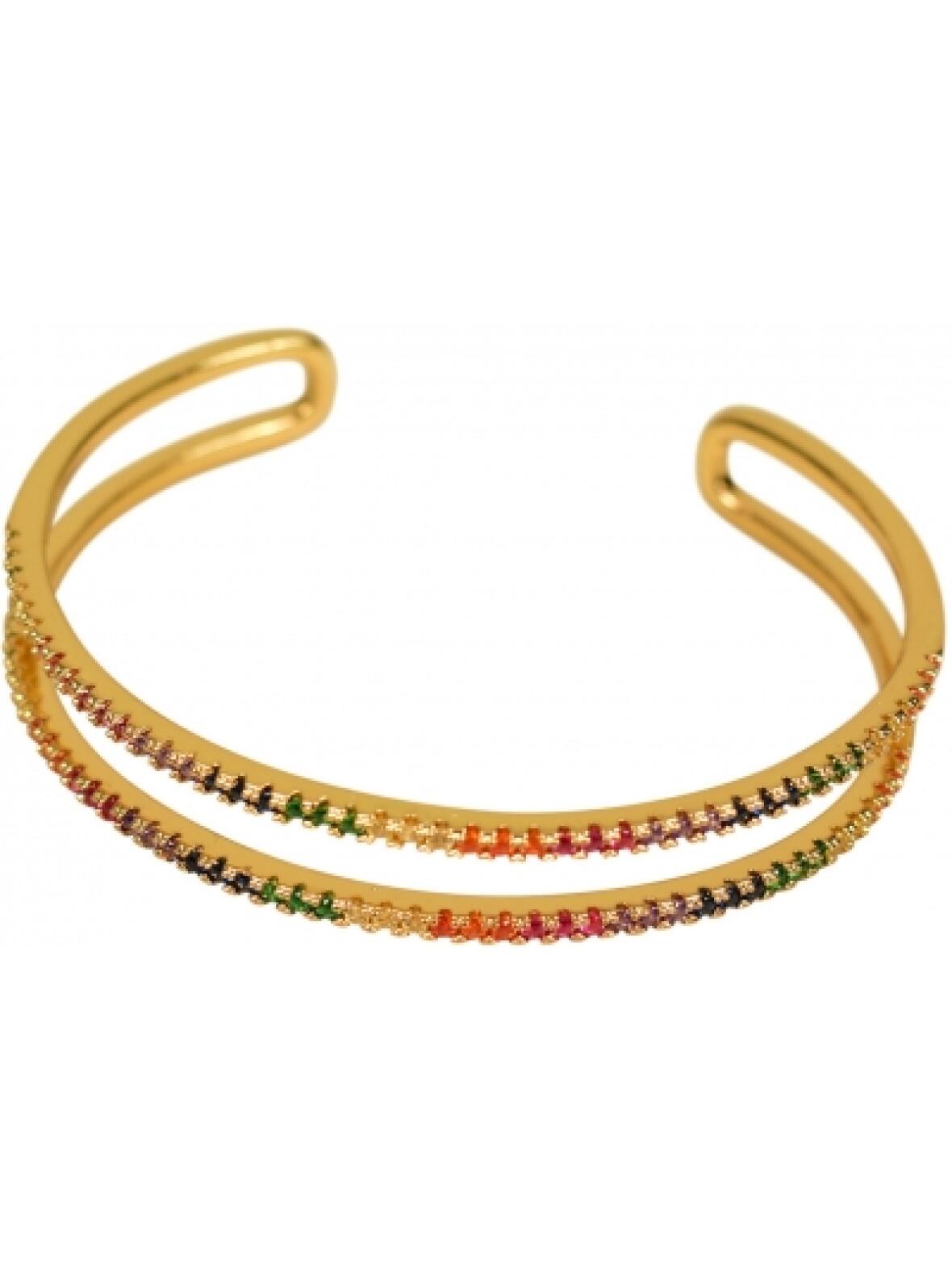 Guld bøjle armbånd fra Update Cph med to rækker med små farvede similisten.